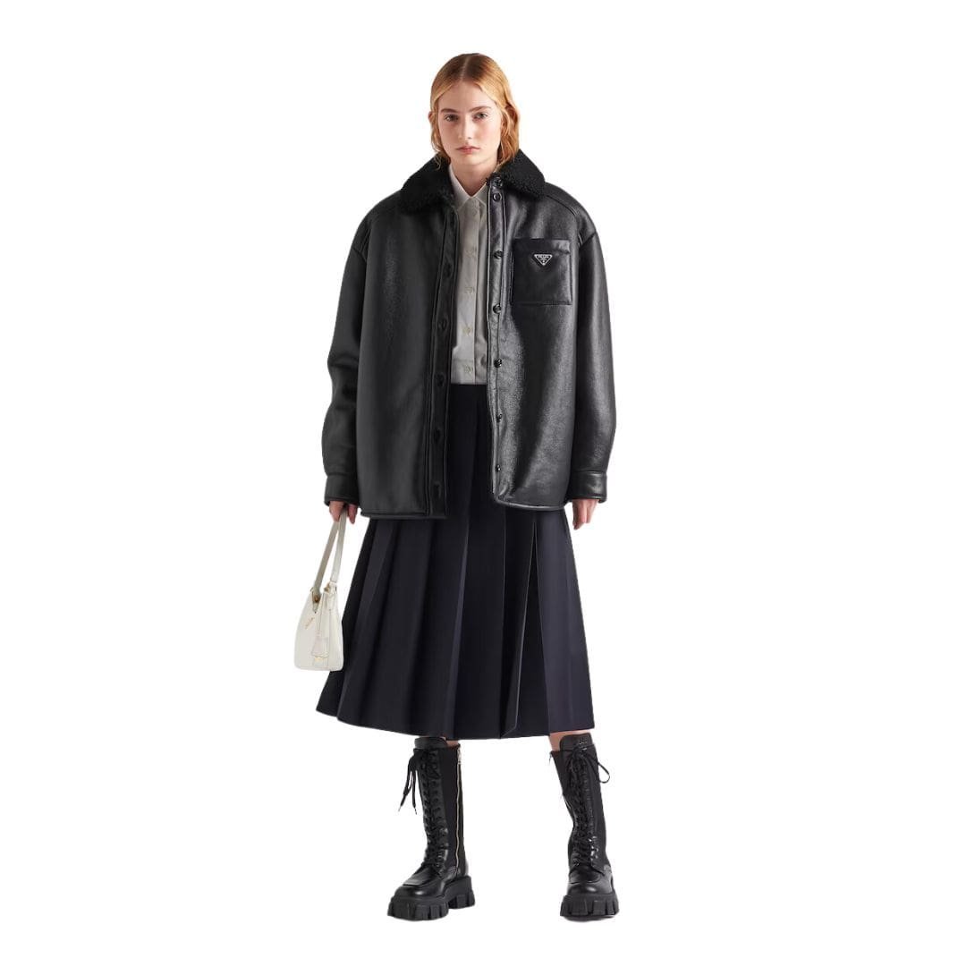 In summary, the Prada Shearling Jacket is a timeless investment piece that exudes luxury and sophistication. With its impeccable craftsmanship, versatile design, and unparalleled comfort, it is sure to remain a wardrobe staple for years to come, epitomizing the enduring allure of Prada’s iconic aesthetic.