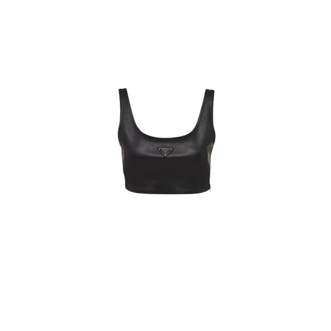 One of the most striking features of the Prada Stretch Nappa Leather Top is its versatility. The stretch properties of the leather allow for a comfortable and flexible fit, ensuring ease of movement without compromising on style. Whether worn alone as a statement piece or layered under a blazer for a more polished look, this top effortlessly transitions from day to night, making it a versatile addition to any wardrobe.PRADA STRETCH NAPPA LEATHER TOP