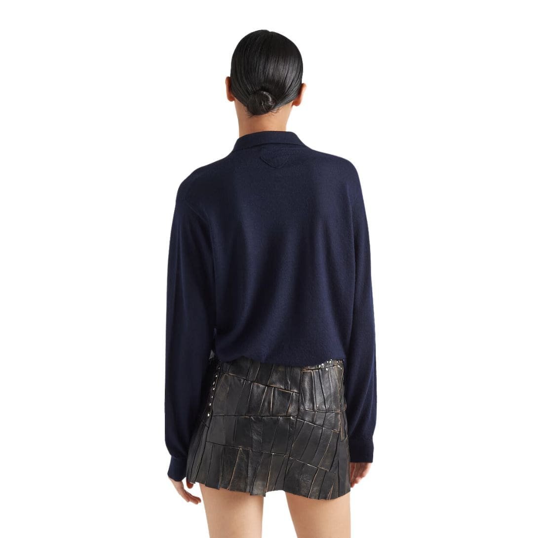 Constructed from sumptuously soft nappa leather, the skirt boasts a supple texture that drapes elegantly, ensuring both comfort and style. The patchwork design introduces a dynamic element, seamlessly blending different hues and textures to create a visually captivating effect. Each patch is carefully curated, featuring intricate stitching and craftsmanship that speaks to Prada’s heritage of excellence.