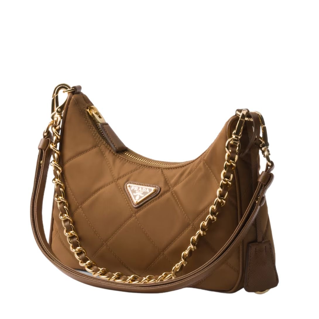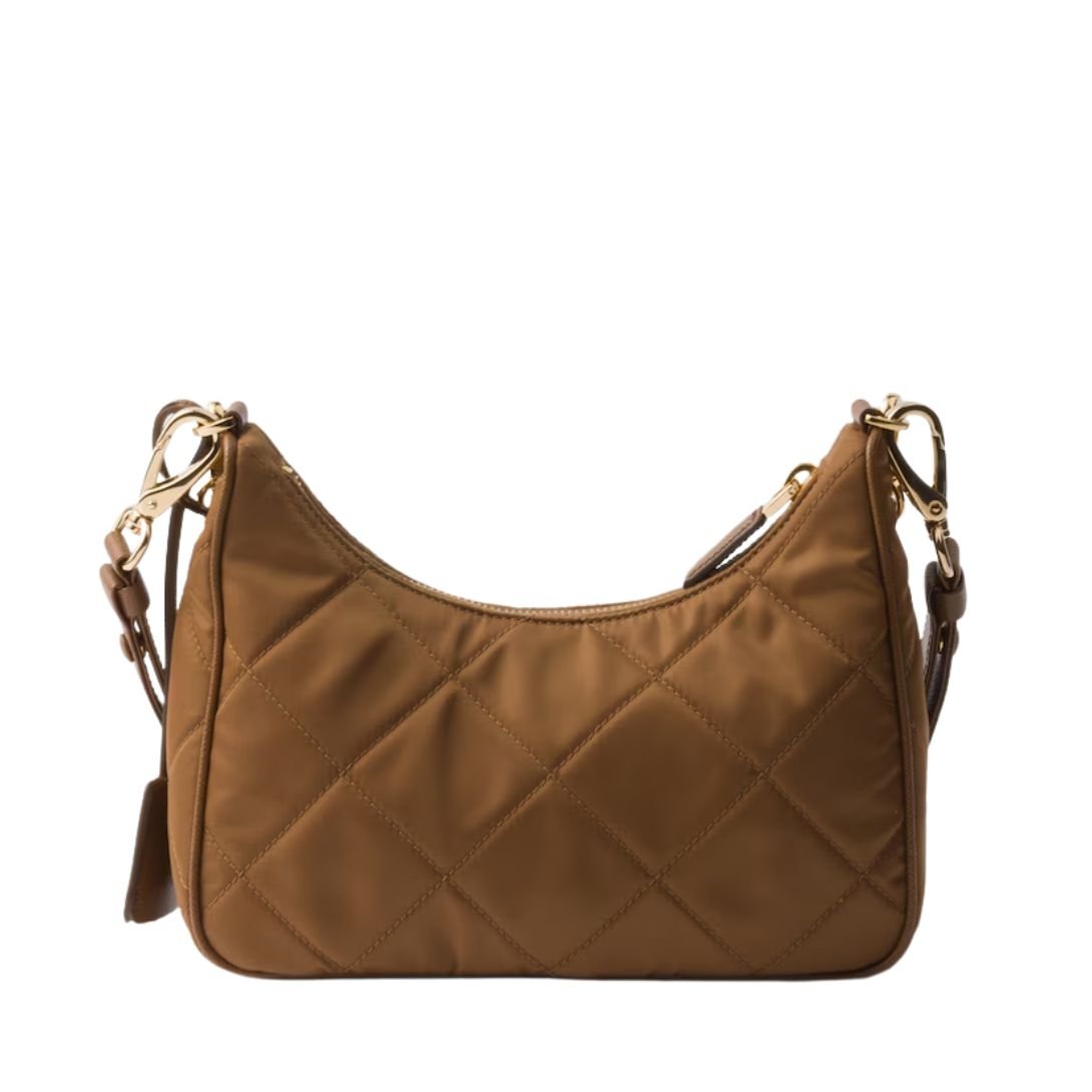 Crafted from Prada’s innovative Re-Nylon, this padded shoulder bag combines sustainable luxury with timeless design. The soft, lightly padded and top-stitched silhouette highlights its contemporary shape, while the technical fabric offers a durable, eco-conscious finish.