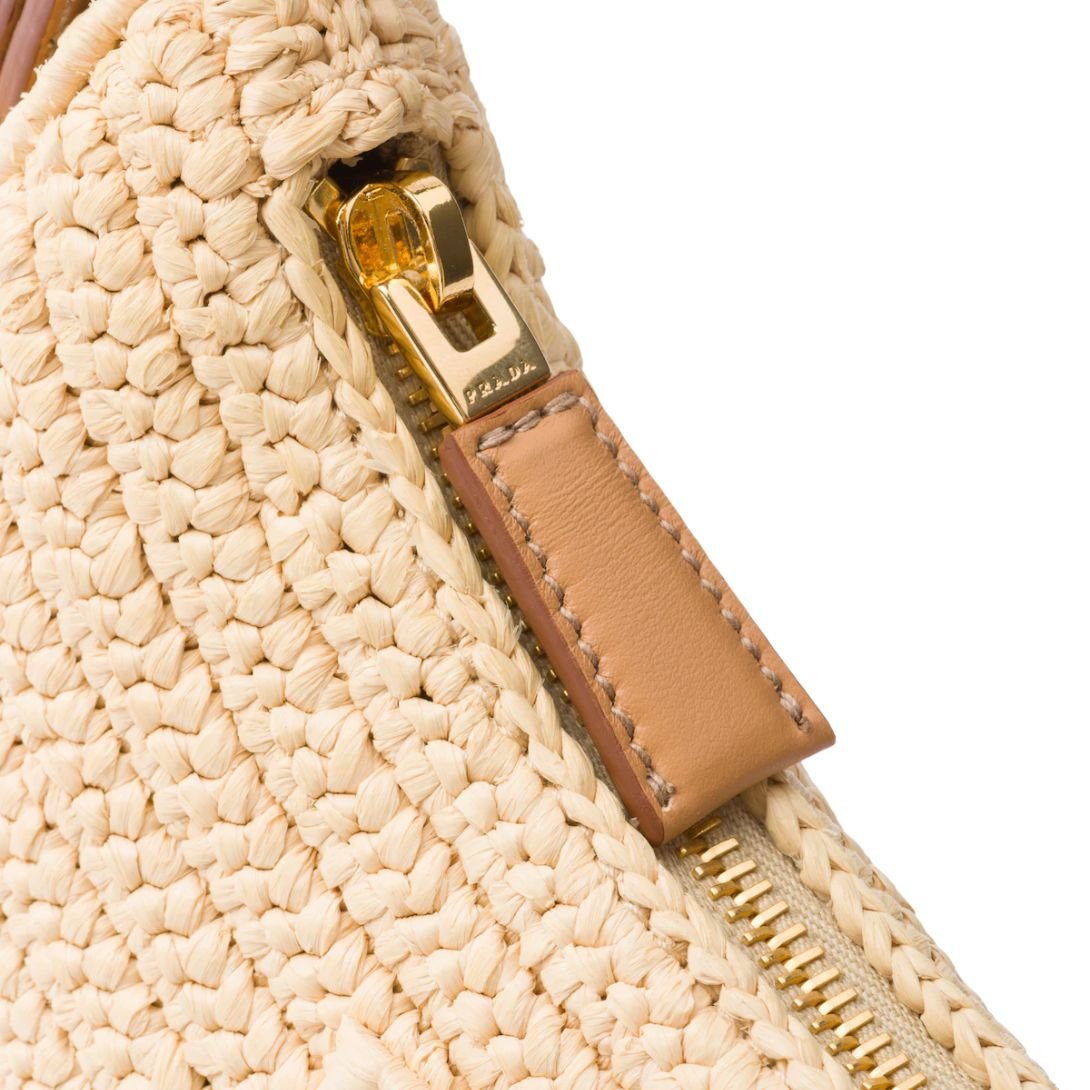 A reimagined take on the classic hobo silhouette, this Prada Crochet Hobo Bag captures a fresh, summery spirit with effortless elegance. Crafted from raffia-effect yarn, its sinuous lines and textured finish evoke artisanal charm, while refined elements like the leather handle and gold-tone hardware elevate the overall look.