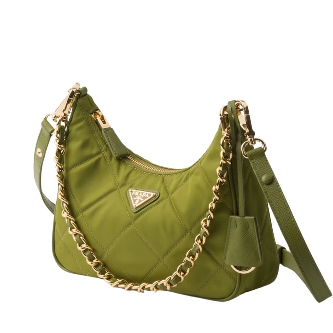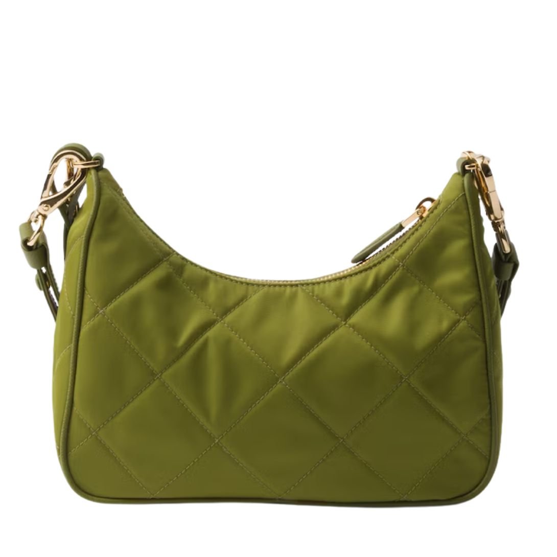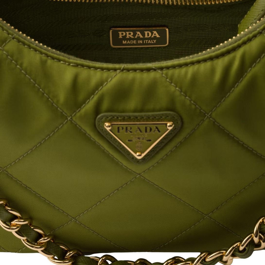 Crafted from Prada’s innovative Re-Nylon, this padded shoulder bag combines sustainable luxury with timeless design. The soft, lightly padded and top-stitched silhouette highlights its contemporary shape, while the technical fabric offers a durable, eco-conscious finish.