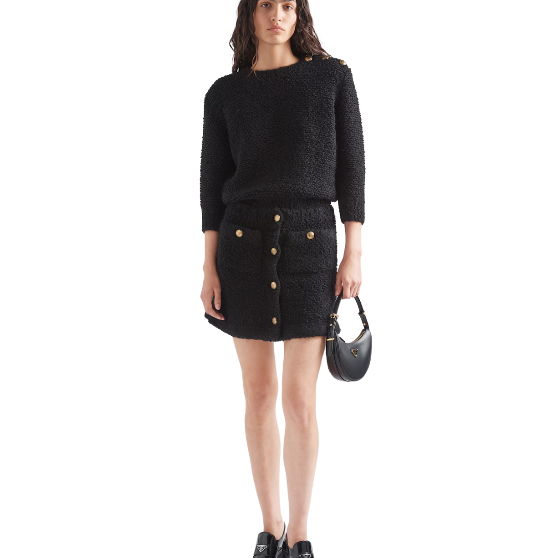 A statement of modern femininity, this compact Prada mini-bag delivers the perfect blend of practicality and elegance. Ideal for elevated everyday wear or sophisticated occasions, it’s a go-to accessory for those who favor fashion-forward design with classic Prada flair.
