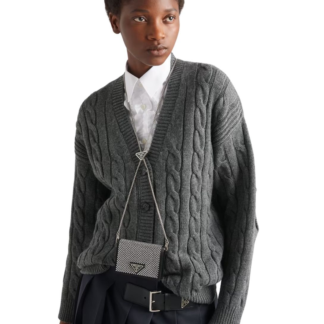 Compact in form, bold in presence—this cardholder channels Prada’s signature fusion of modernity and sophistication.