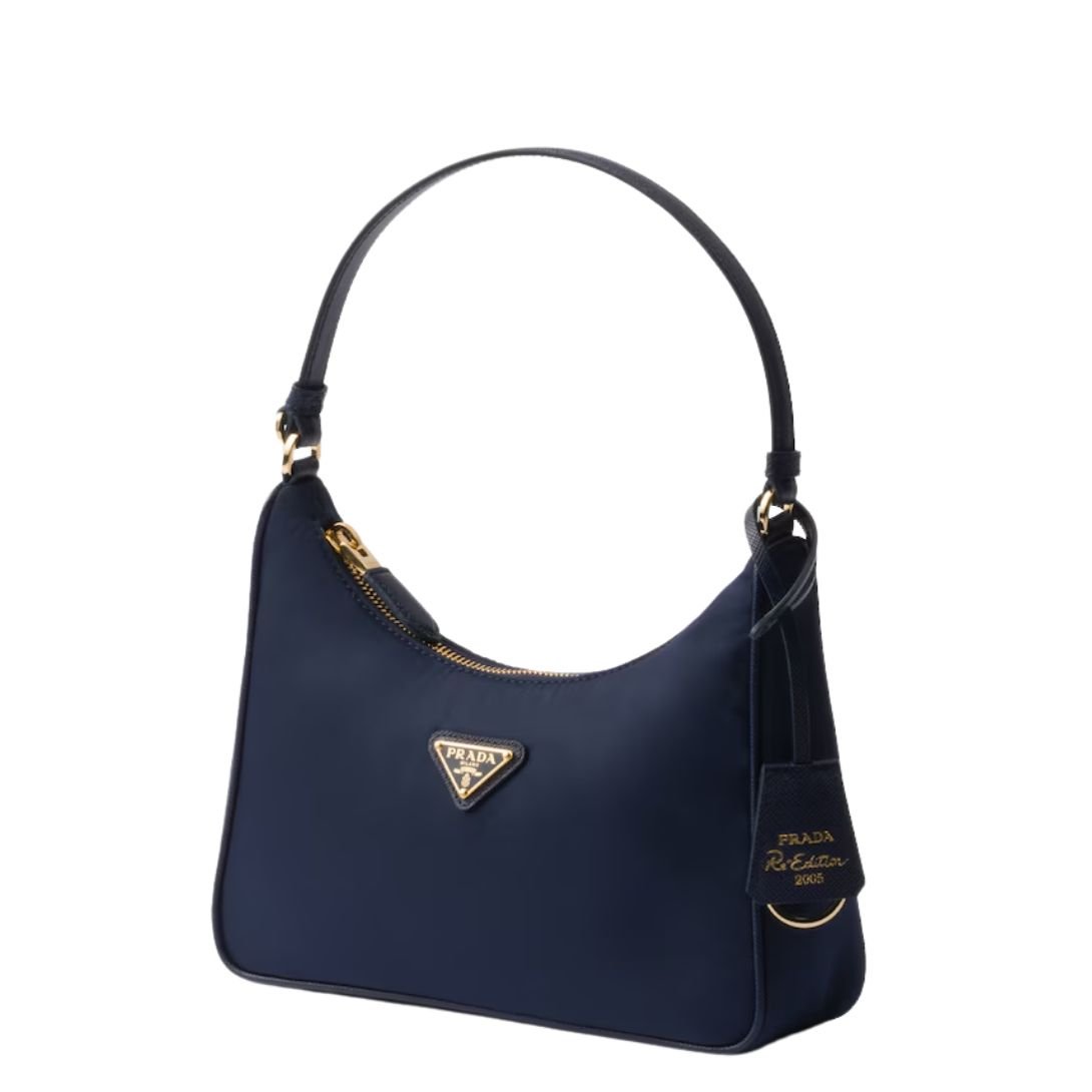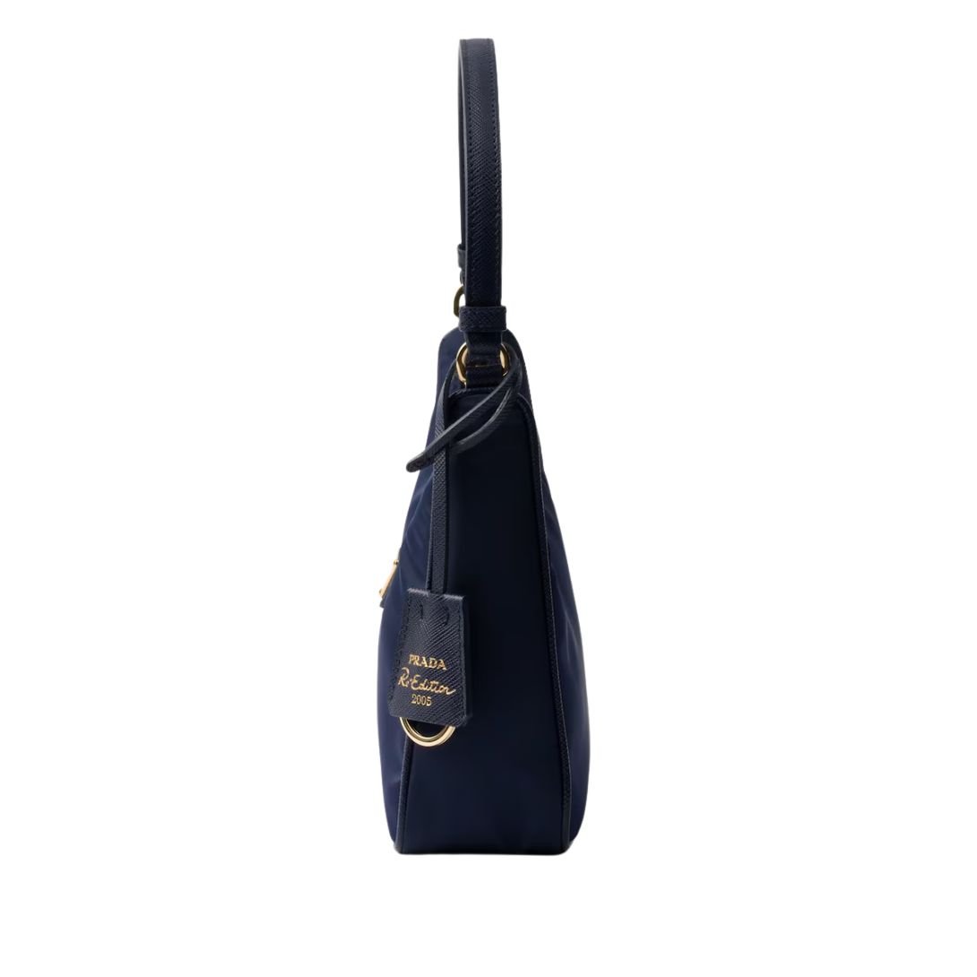 The Prada Re-Edition 2005 Shoulder Bag reimagines the iconic mini hobo silhouette with a forward-thinking, eco-conscious design. Crafted from innovative Re-Nylon, this accessory blends style, sustainability, and practicality into one compact yet fashionable piece. Re-Nylon is a regenerated nylon yarn derived from recycled plastic waste recovered from oceans, fishing nets, and discarded textiles—highlighting Prada’s dedication to environmental responsibility without compromising luxury.