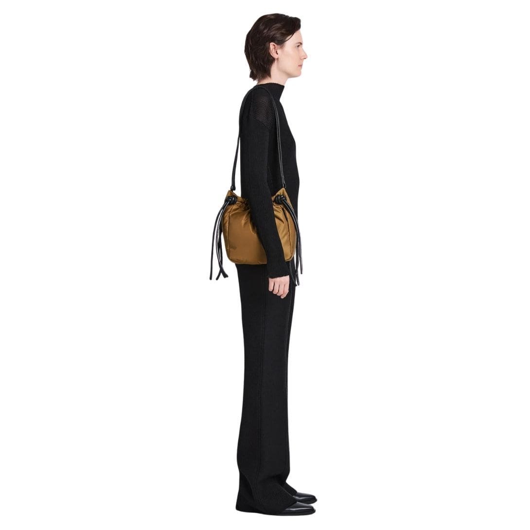 Elevate your accessories collection with the effortlessly chic Proenza Drawstring Pouch In Nylon Fatigue, designed to marry practicality with timeless style. Crafted from high-quality nylon in classic black, this pouch boasts a compact yet slouchy silhouette that exudes understated luxury.