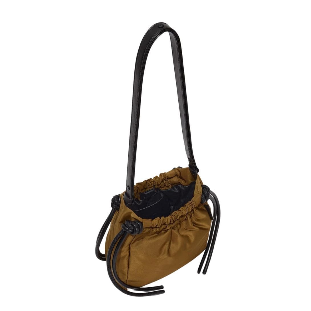 The single shoulder strap offers comfortable and convenient carrying options, allowing you to effortlessly transition from day to night with ease. The ruched open top, secured with a magnetic fastening, provides easy access to your essentials while adding a touch of texture and visual interest to the silhouette.