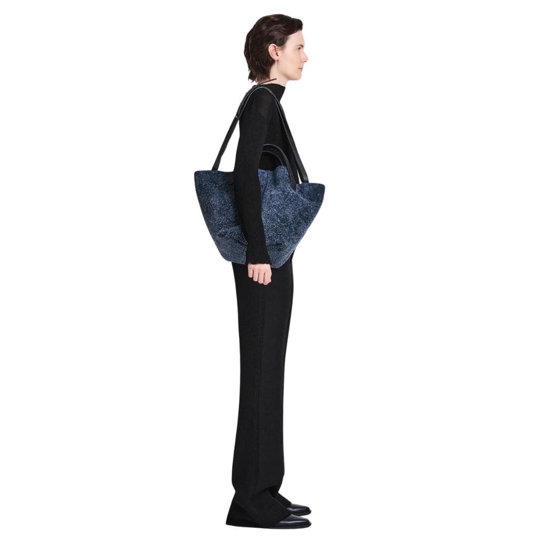 Crafted from 100% calfskin suede, the Navy Blue Large Chelsea Tote promises durability and luxury, ensuring it remains a coveted staple in your collection for years to come. Embrace understated elegance and modern versatility with this standout piece from Proenza Schouler’s collection, where every detail is meticulously crafted to reflect unparalleled quality and style.