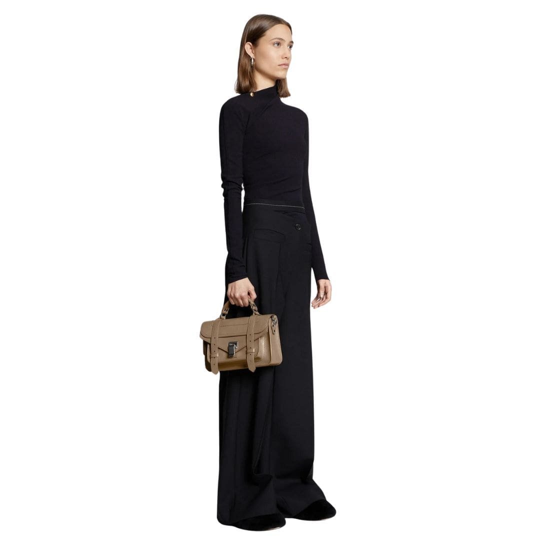 The PS1 Tiny Bag in Light Taupe is a versatile and stylish accessory that seamlessly combines timeless elegance with modern practicality. Its refined design and impeccable craftsmanship stand as a testament to the enduring allure of Proenza Schouler’s iconic PS1 family, elevating any ensemble with its understated yet sophisticated charm.