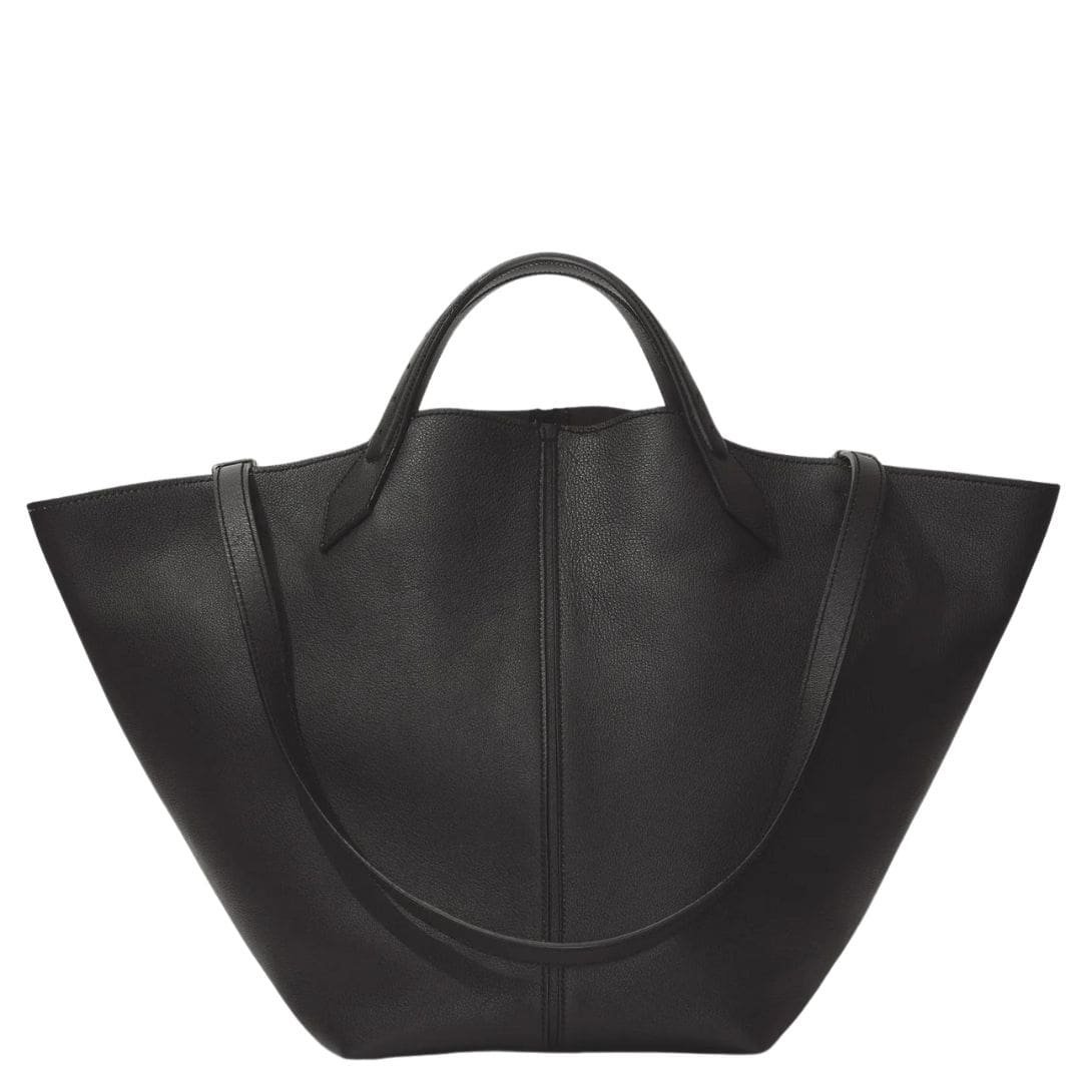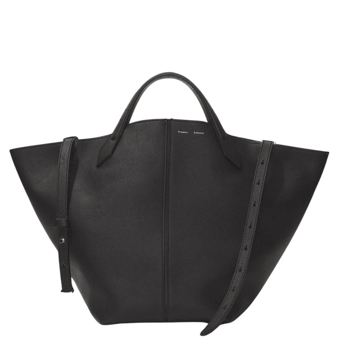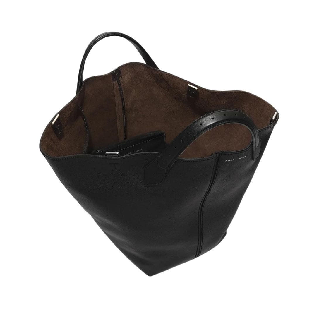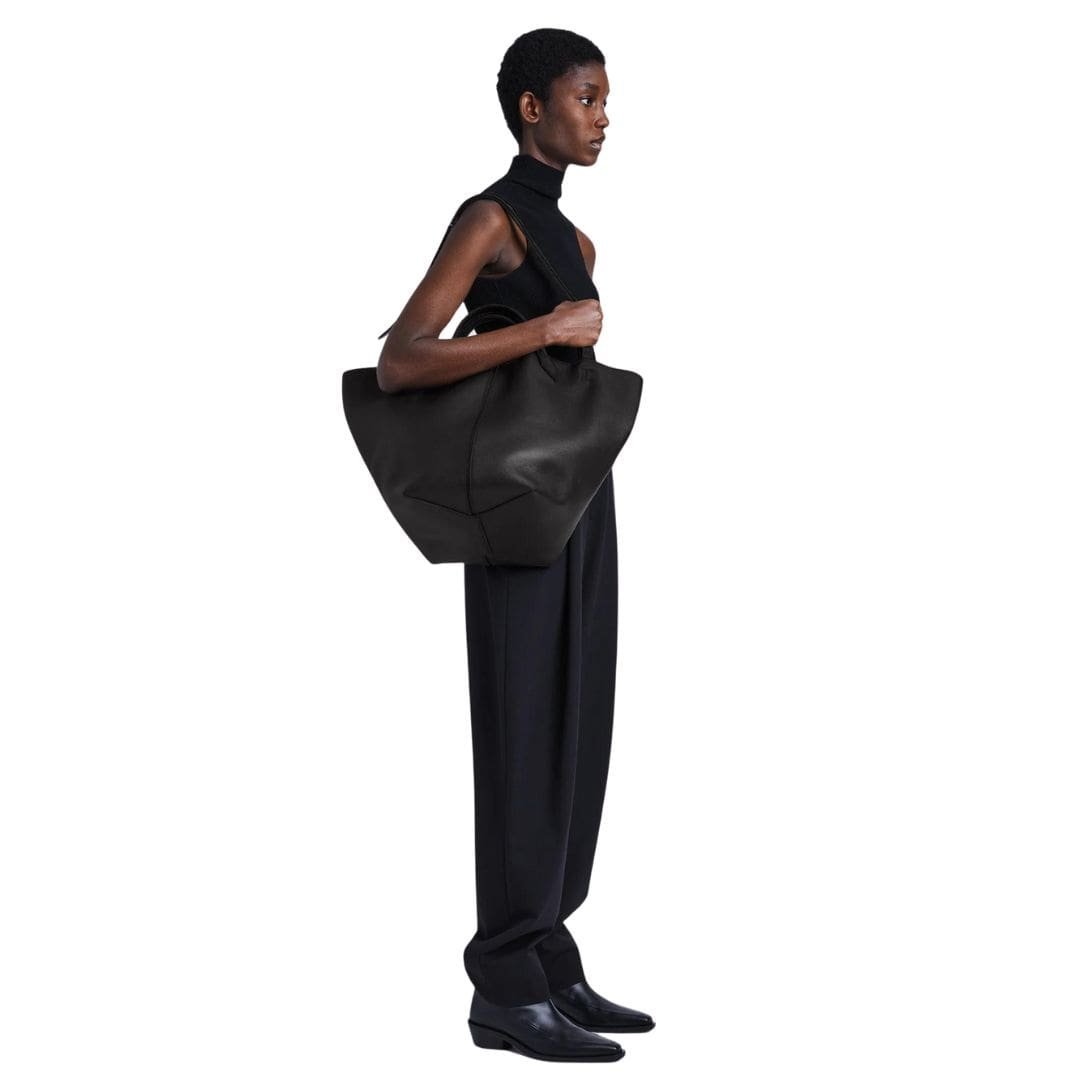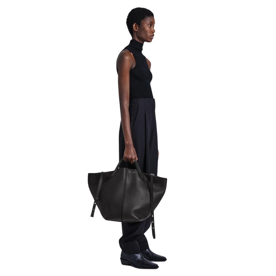 The Fall 23 Runway Collection PROENZA XL Chelsea Tote Black. unveils a captivating fusion of sophistication and functionality, epitomized by Look 14’s centrepiece: the XL Chelsea Tote. Crafted meticulously from supple calfskin leather, this exquisite accessory exudes an aura of understated luxury.