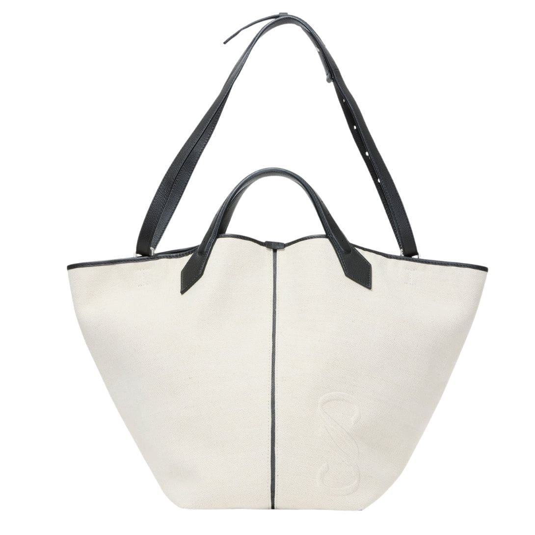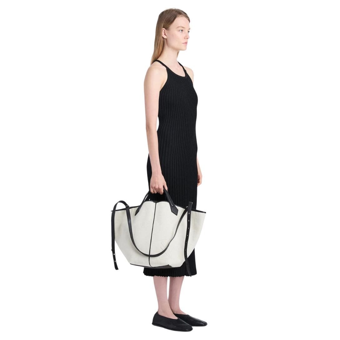Experience the epitome of casual sophistication with Proenza XL Chelsea Tote In Canvas Black Natural, a captivating addition to your ensemble crafted with meticulous attention to detail. This exquisite tote seamlessly blends the rugged durability of cotton canvas with the luxurious touch of calfskin, resulting in a soft, unstructured silhouette that exudes effortless charm.
