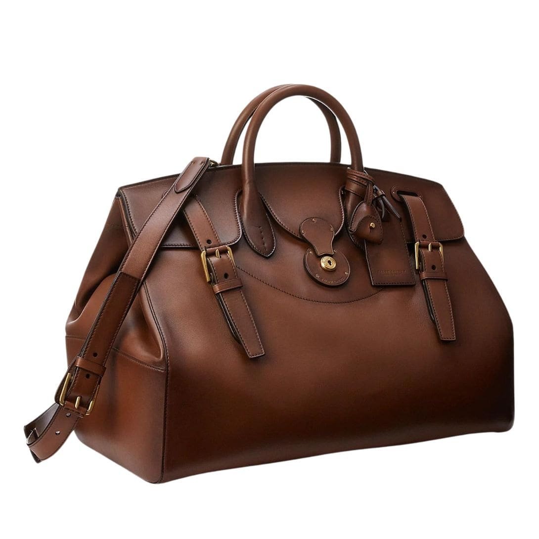 Subtle Ralph Lauren branding adds a touch of prestige to the duffel, discreetly embossed or engraved, reaffirming its status as a symbol of refined taste and style.