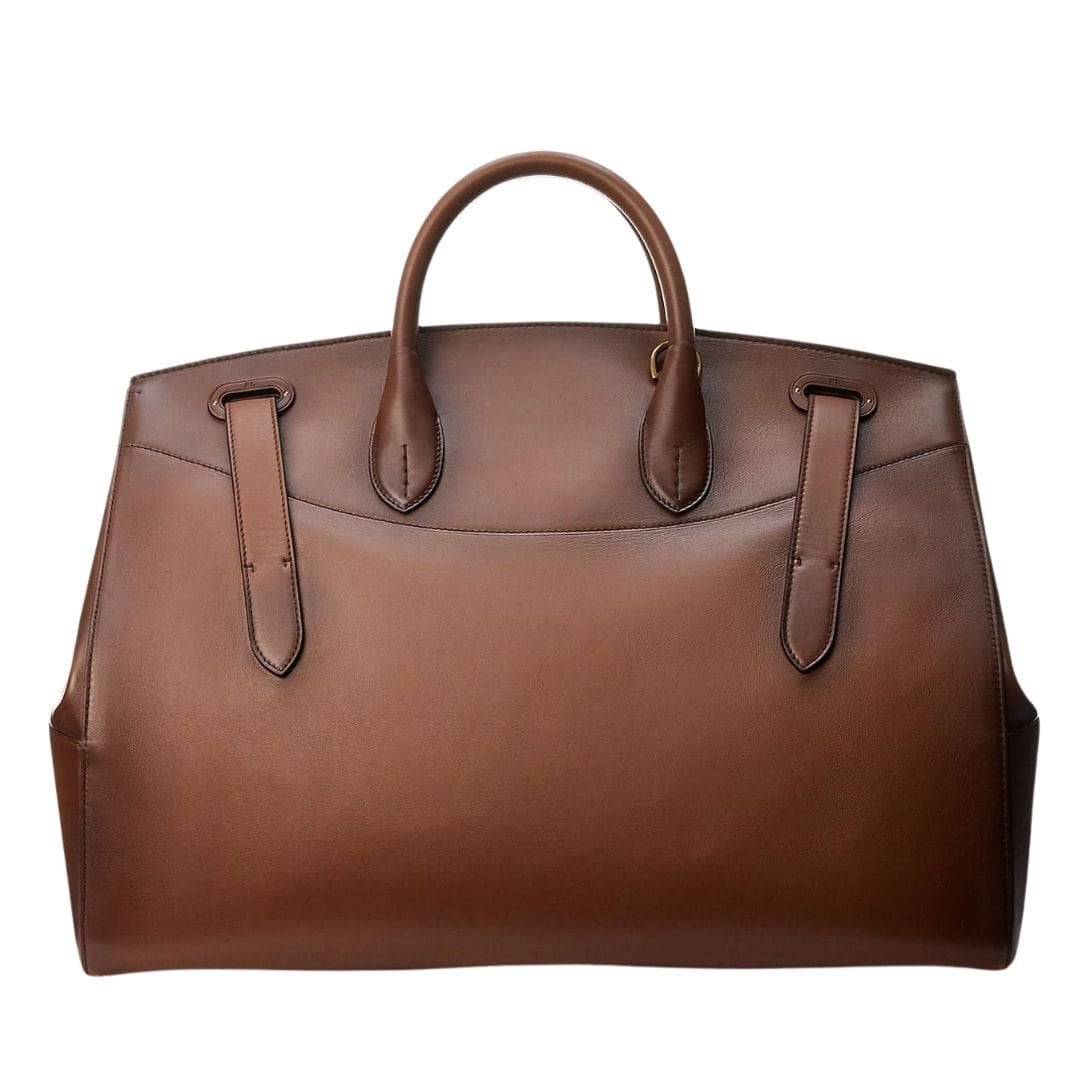 The Ralph Lauren Cooper Burnished Calfskin Duffel is the epitome of timeless elegance and functionality. Crafted with meticulous attention to detail, this duffel exudes sophistication and luxury. RALPH LAUREN COOPER BURNISHED CALFSKIN DUFFEL