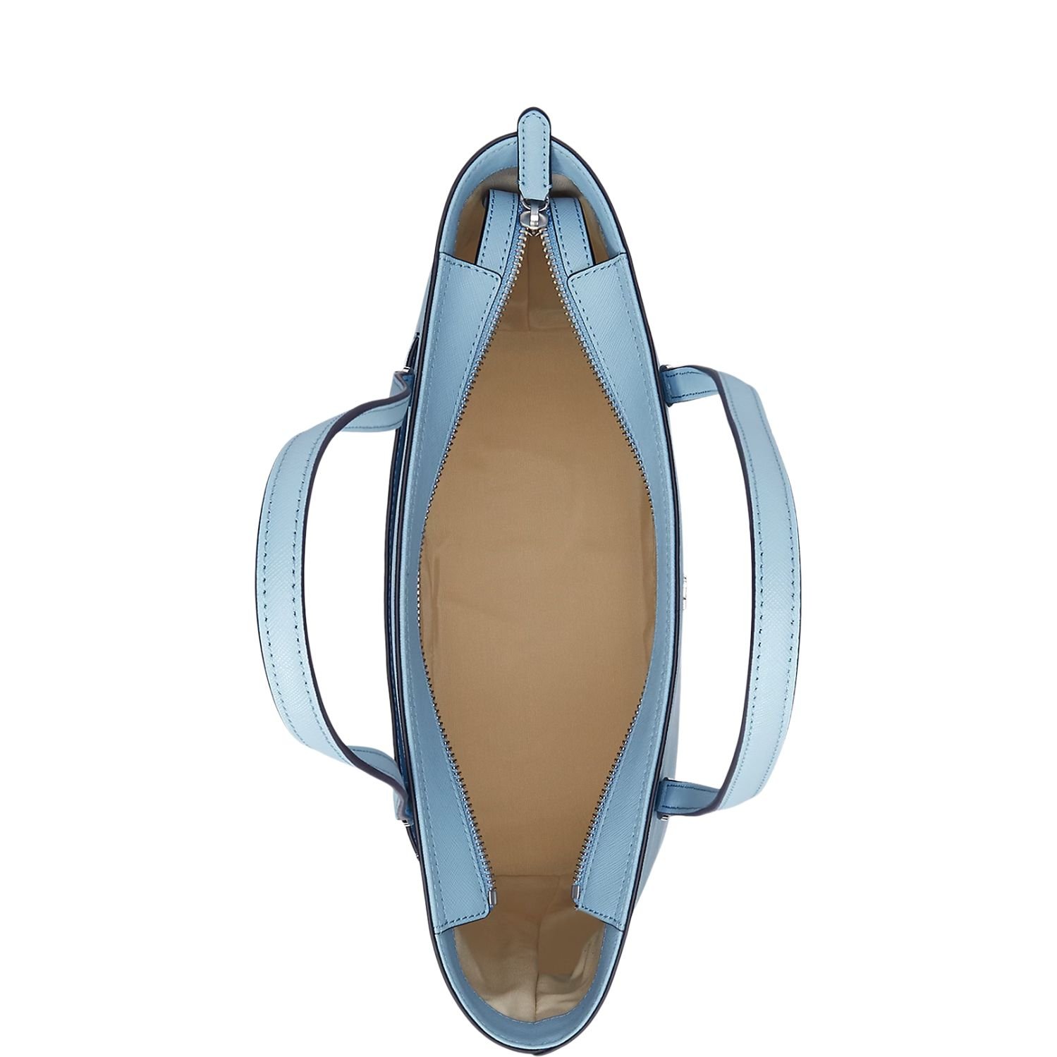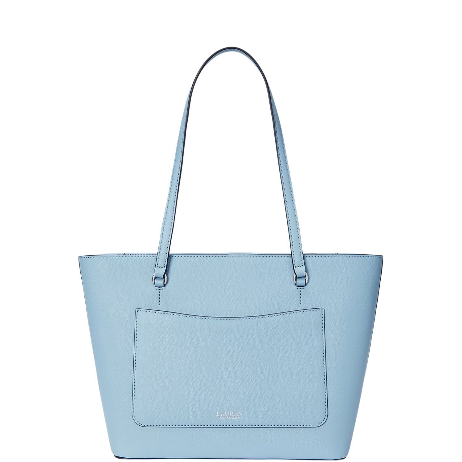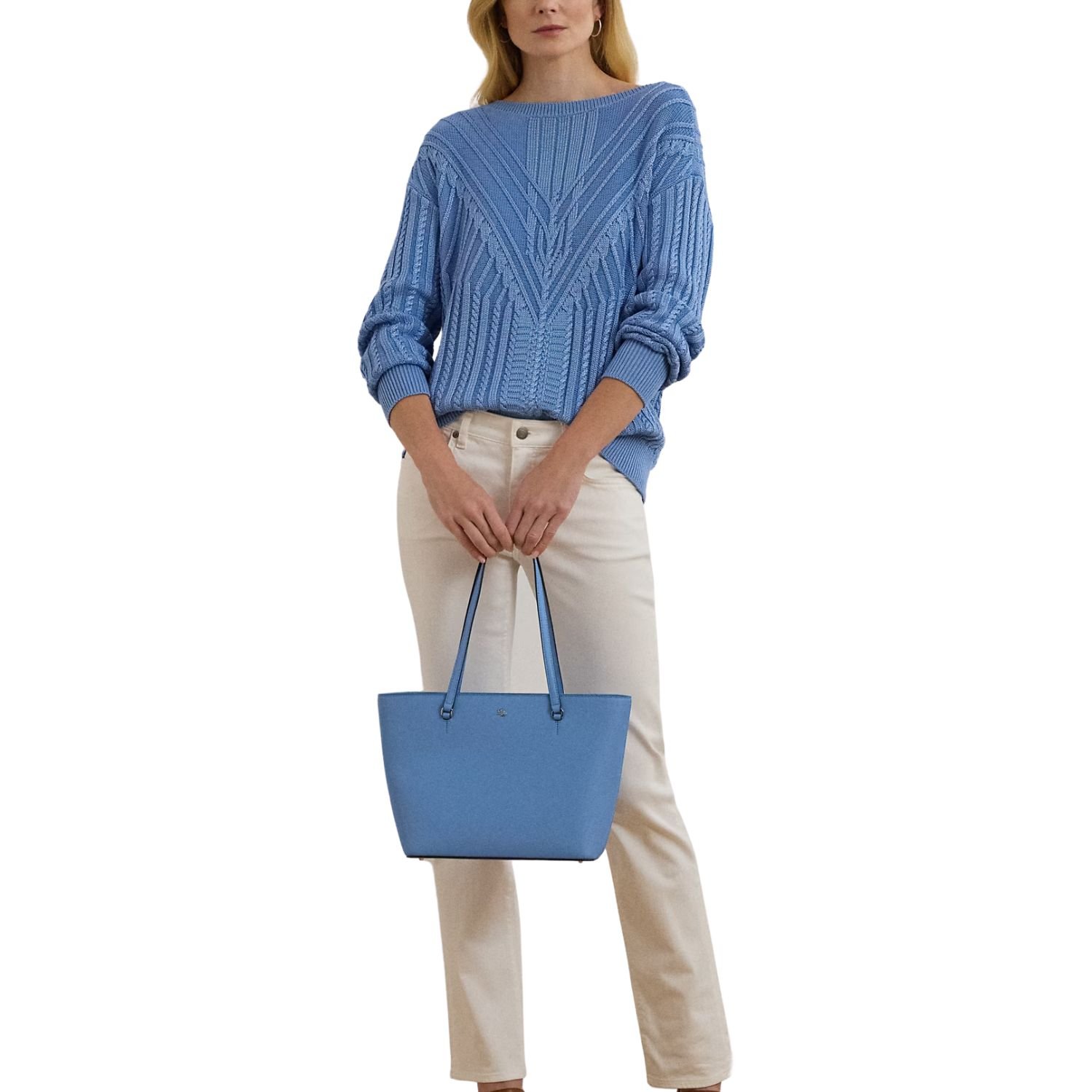 RALPH LAUREN CROSSHATCH LEATHER MEDIUM KARLY SHOPPER TOTE SKY BLUE