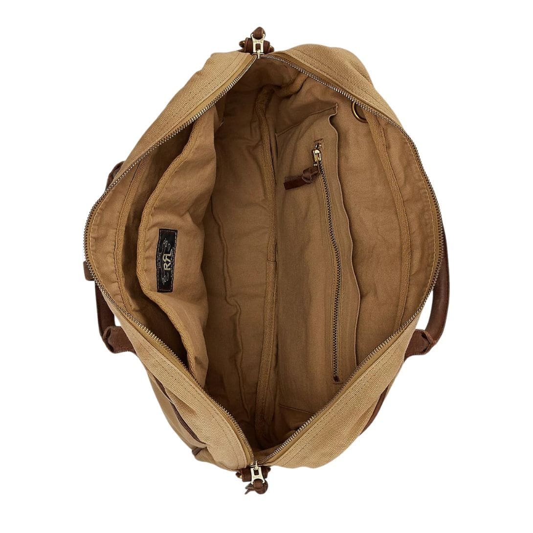 Accentuating the canvas exterior are the exquisite leather trimmings, meticulously crafted from the finest quality leather. These accents not only enhance the briefcase’s visual appeal but also add a touch of sophistication and refinement. The rich, supple leather exudes luxury, while its impeccable craftsmanship speaks volumes about Ralph Lauren’s commitment to excellence.