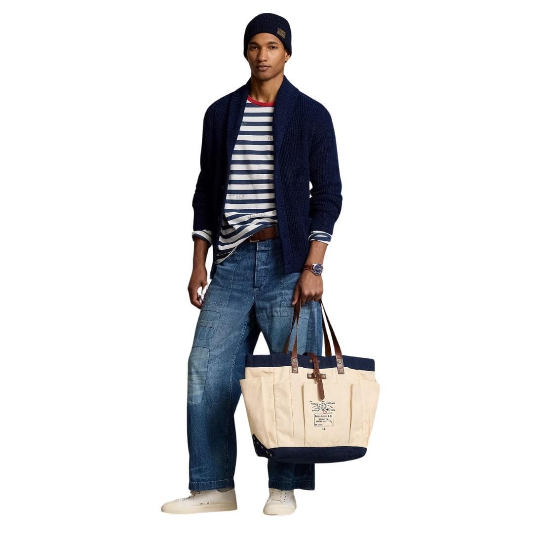 At first glance, the tote exudes an air of refined elegance, courtesy of its premium materials and impeccable craftsmanship. The sturdy canvas construction serves as the canvas for Ralph Lauren’s iconic design ethos, exuding a sense of effortless luxury. The neutral tones of the canvas create a versatile backdrop, effortlessly complementing a wide range of ensembles and occasions.