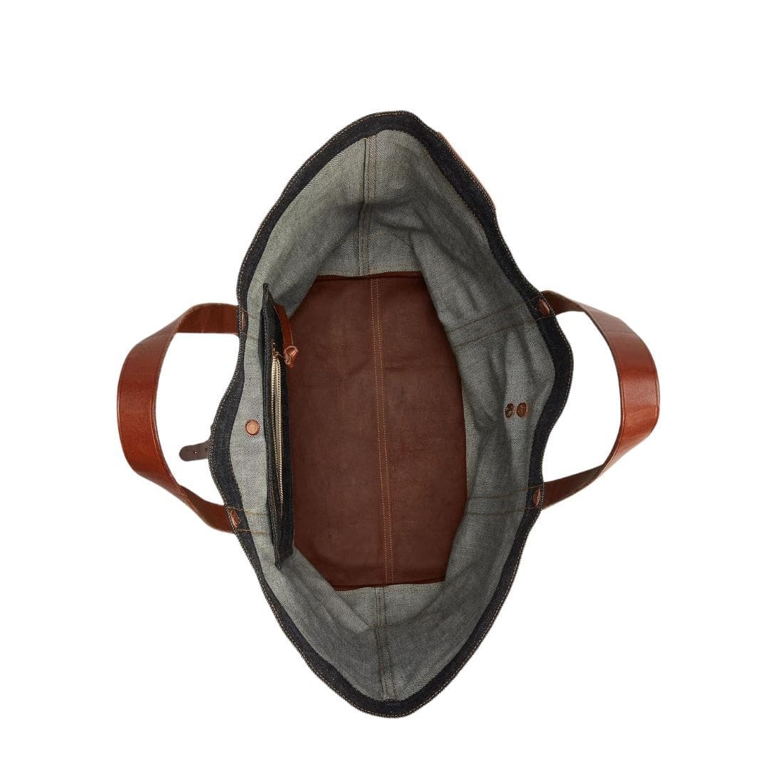 At first glance, the tote’s exterior showcases a fusion of rich, indigo denim and supple leather trim, creating a harmonious contrast that is both visually striking and durable. The denim fabric, known for its rugged charm and enduring appeal, lends a sense of casual refinement, making it an ideal companion for everyday wear. Complementing the denim, the luxurious leather trim adds a touch of opulence, elevating the tote’s aesthetic and ensuring longevity.