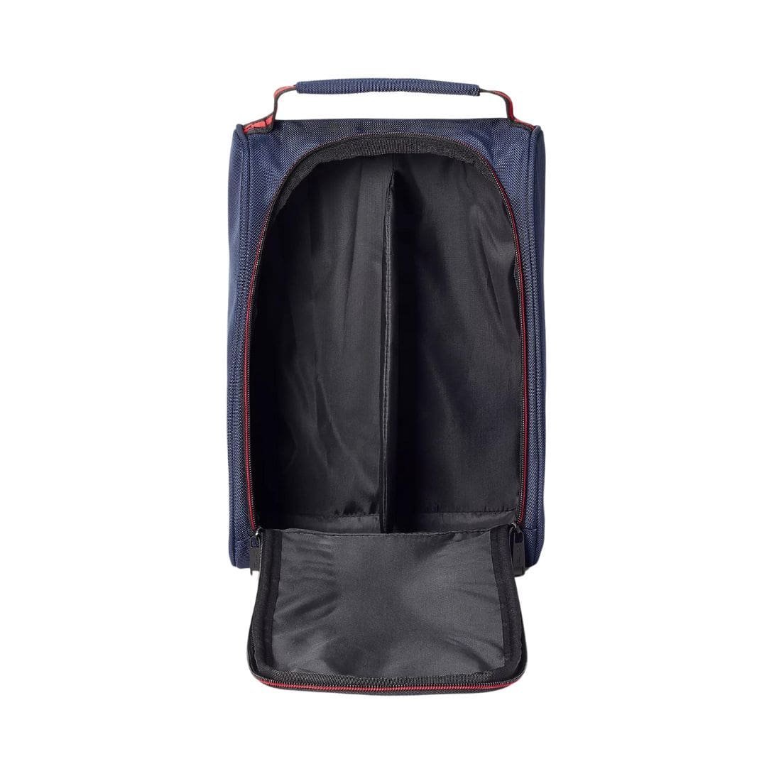 The bag is also equipped with practical features for ease of use. A sturdy handle allows for easy carrying, making it convenient for golfers to transport their shoes from home to the course. The zipper closure is robust and smooth, providing secure storage while allowing easy access.
