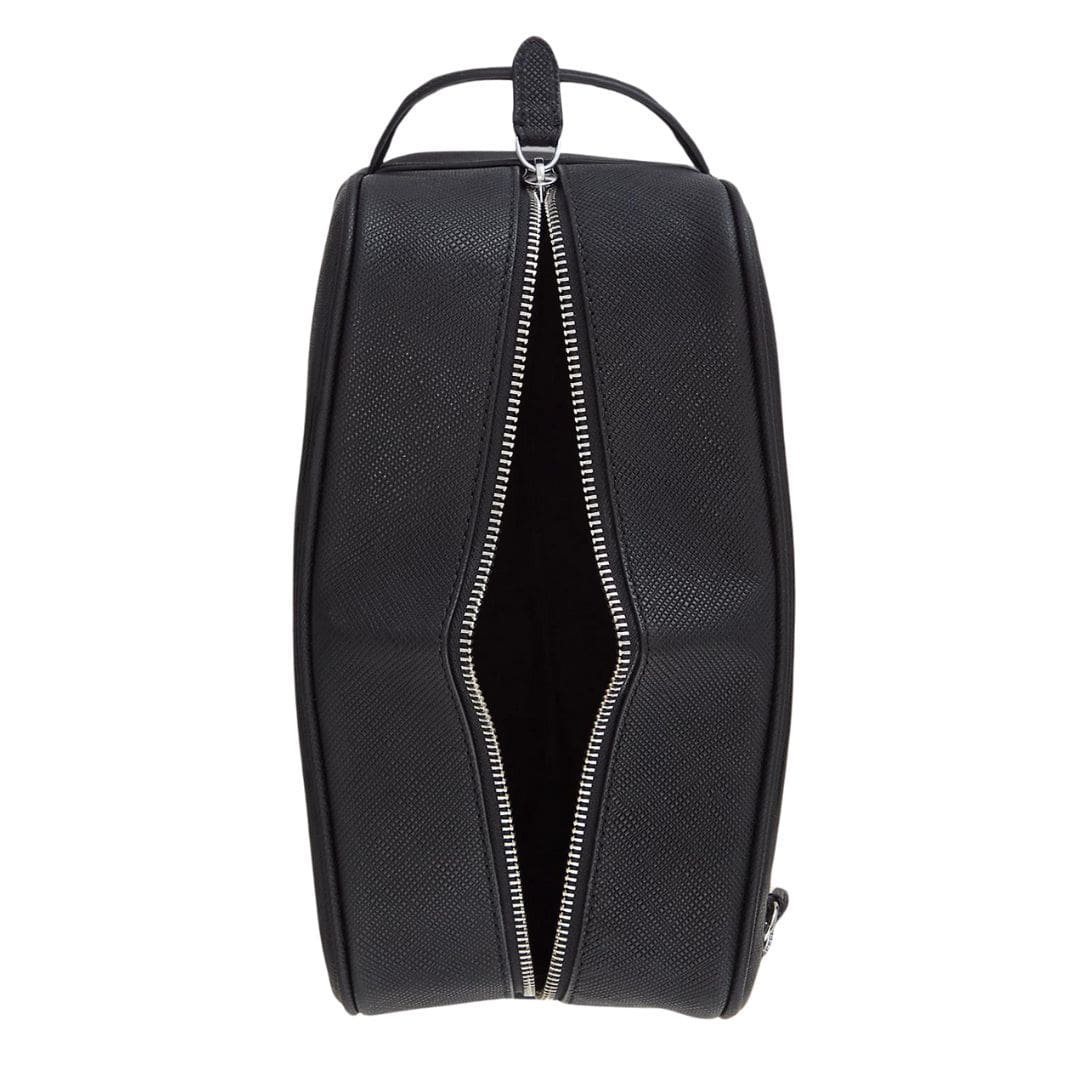 At first glance, the exquisite Saffiano leather exterior captivates with its rich texture and impeccable craftsmanship. Renowned for its durability and distinctive crosshatch pattern, Saffiano leather not only exudes refinement but also ensures longevity, promising to age gracefully with every journey. The sleek silhouette of the travel case is adorned with the iconic Ralph Lauren logo discreetly embossed, a hallmark of uncompromising quality and prestige.