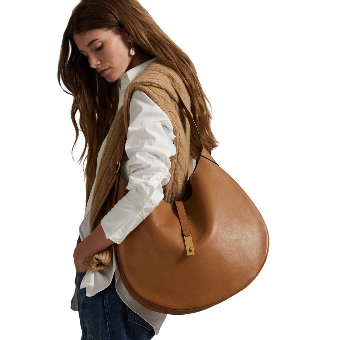RALPH LAUREN WOMEN’S POLO ID LARGE HOBO SHOULDER BAG TAN