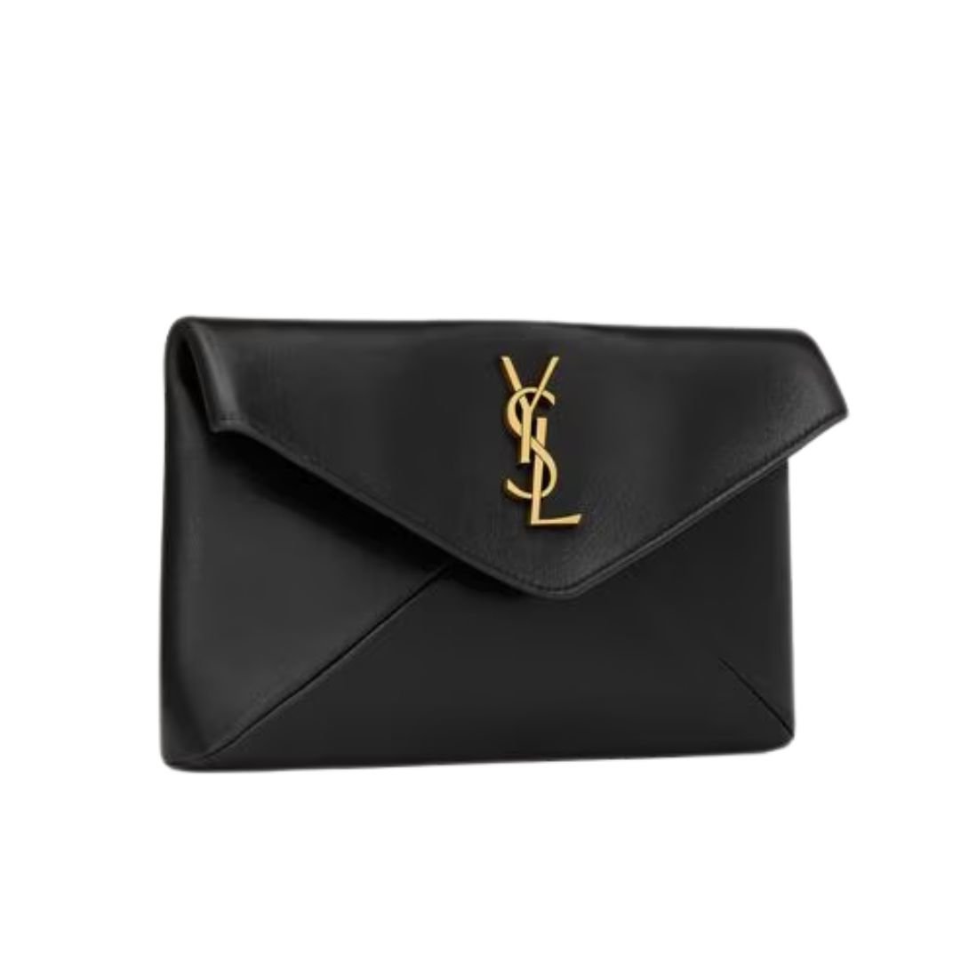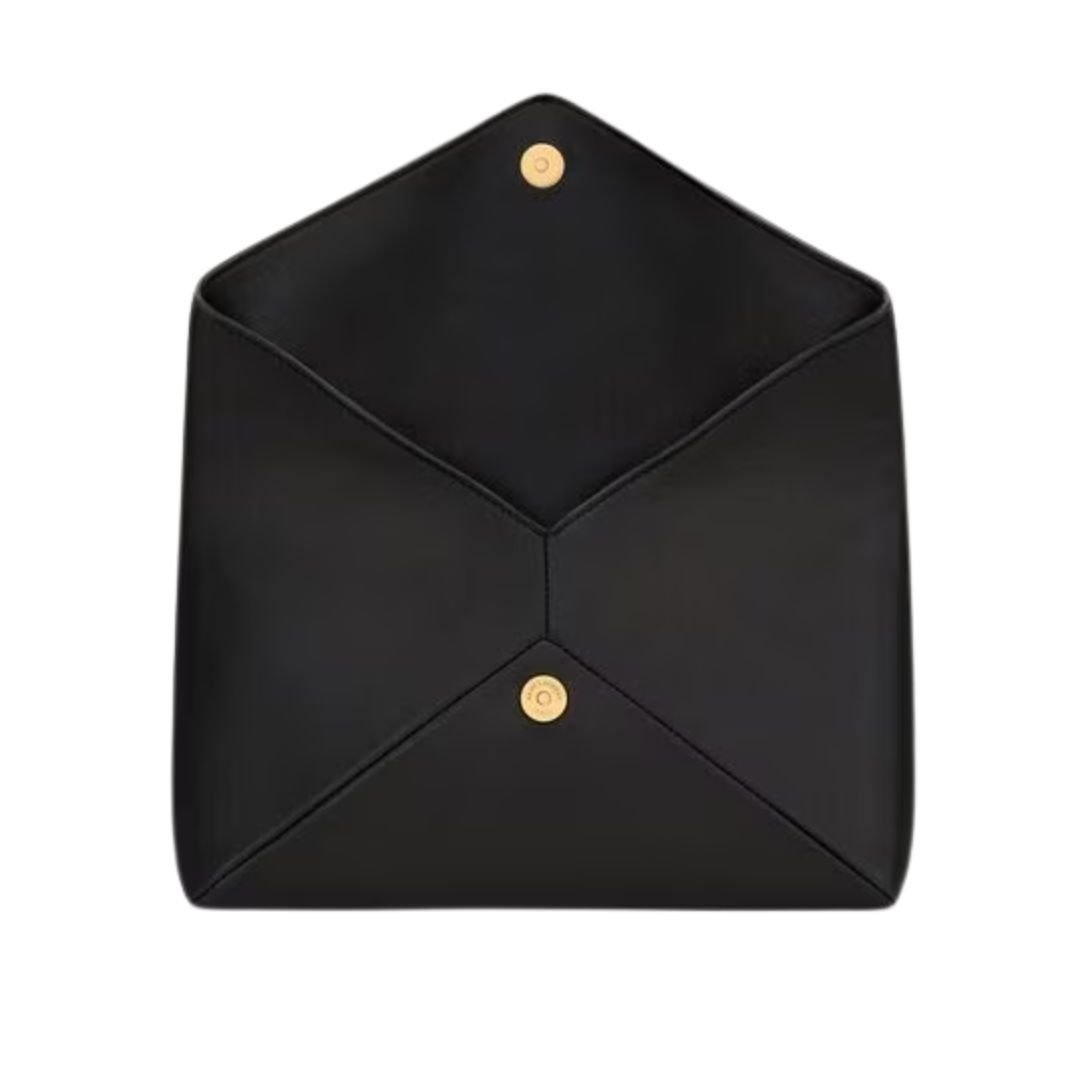 The Small Envelope Pouch is a perfect fusion of minimalist design and iconic detailing. Crafted in luxurious lambskin leather, this compact piece showcases an origami-inspired construction that adds architectural depth to its sleek profile. The front flap is adorned with the unmistakable Cassandre emblem, embodying the timeless elegance of Saint Laurent.