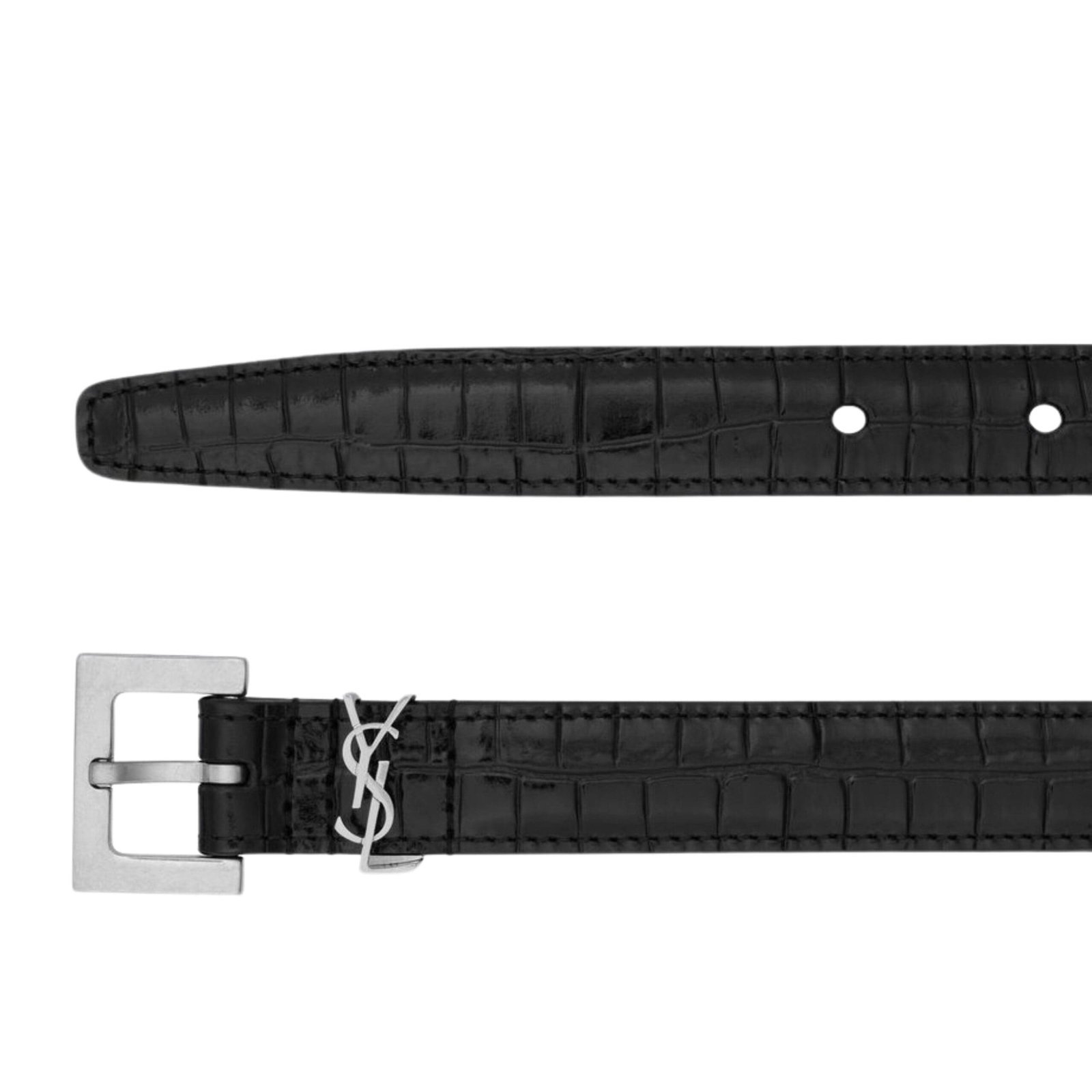 SAINT LAURENT CASSANDRE THIN BELT IN CROCODILE EMBOSSED LEATHER