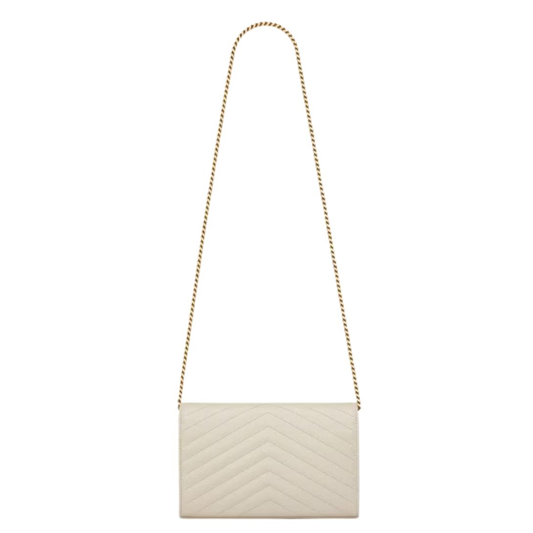 SAINT LAURENT CLASSIC CASSANDRE CHAIN WALLET IN GRAIN DE POUDRE LEATHER BLANC VINTAGE