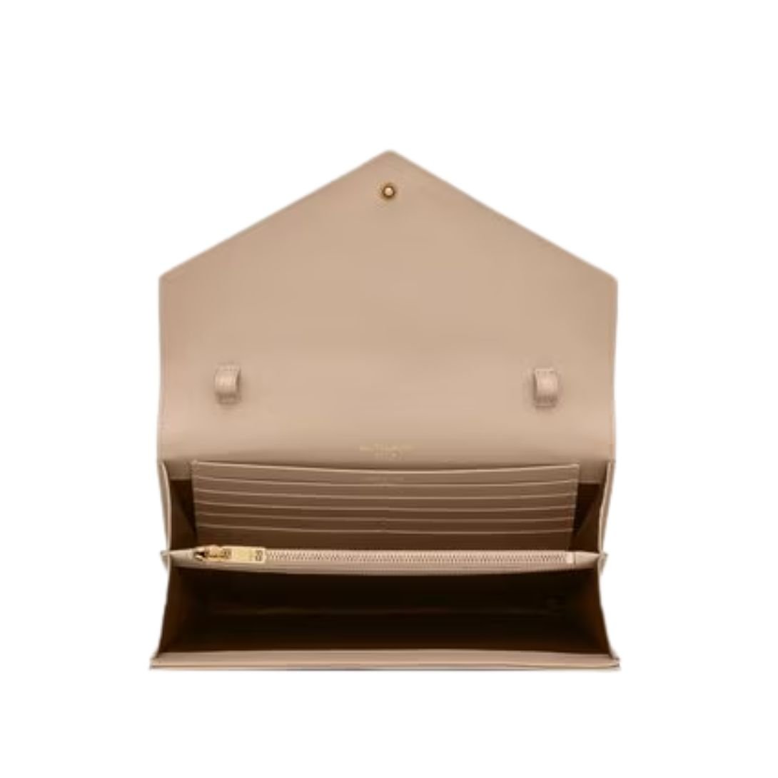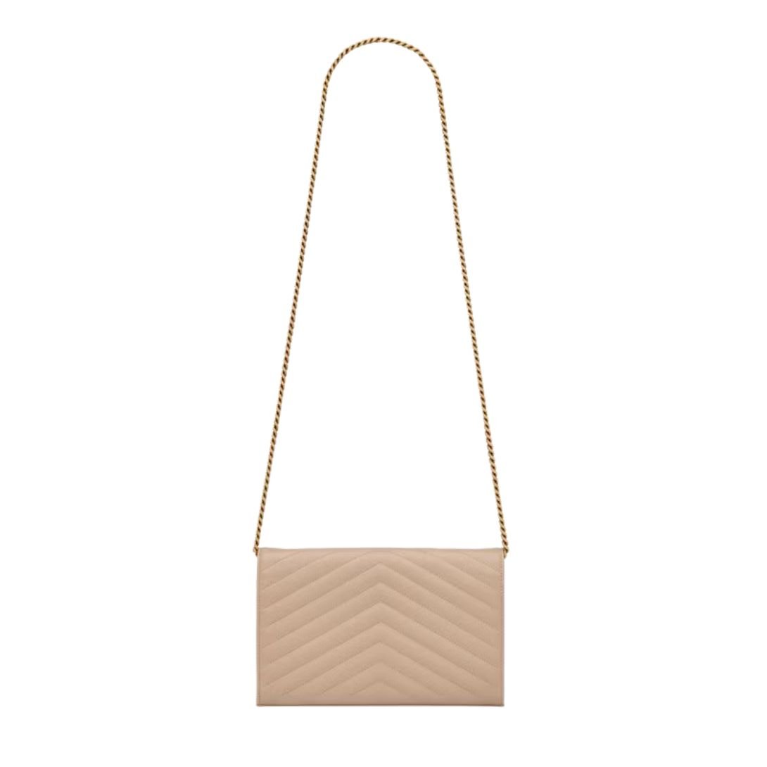 SAINT LAURENT CLASSIC CASSANDRE CHAIN WALLET IN GRAIN DE POUDRE LEATHER DARK BEIGE