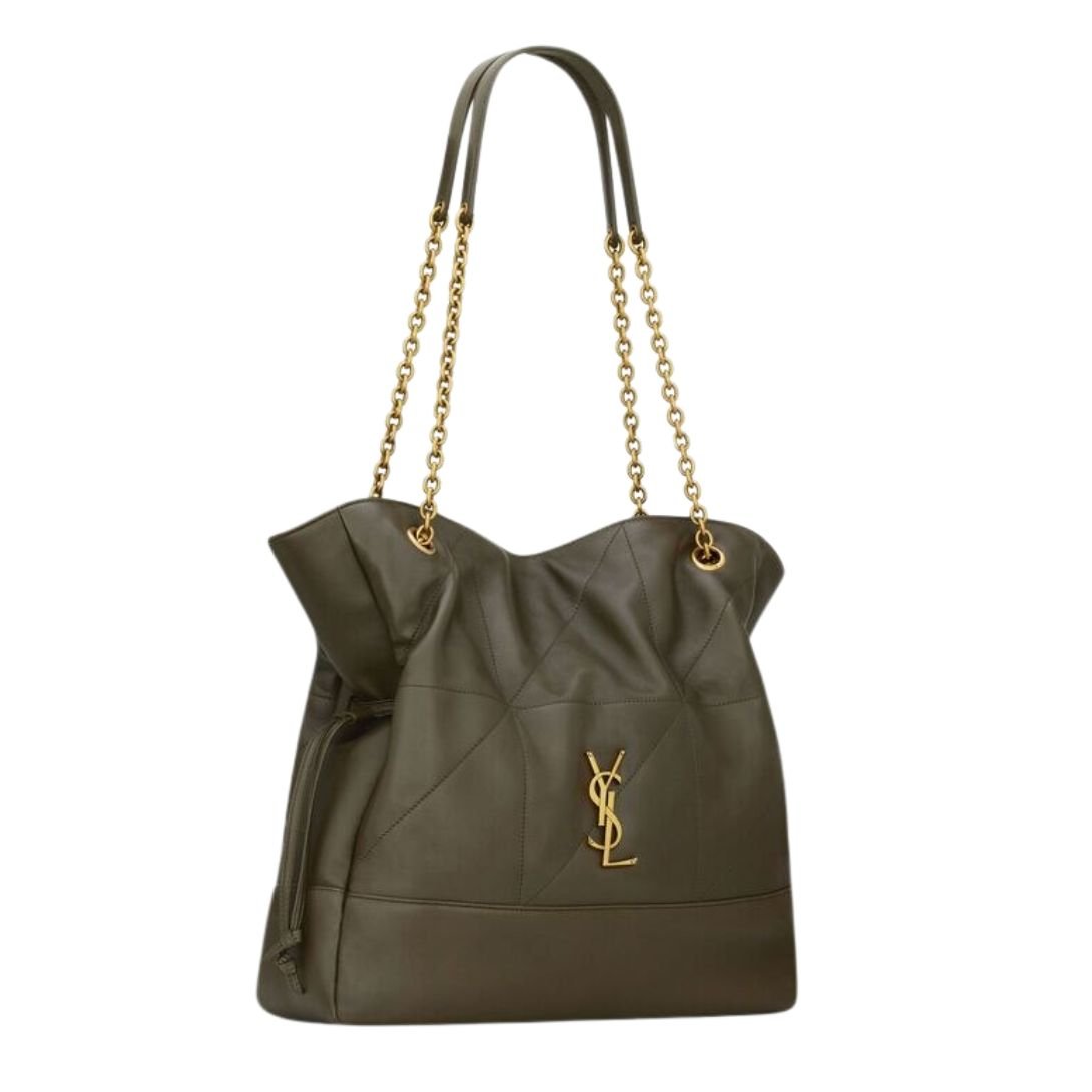 The Jamie Shopping Bag is a refined take on everyday luxury, crafted from supple nappa leather and adorned with Saint Laurent’s signature Carré Rive Gauche quilted topstitching. Showcasing the iconic Cassandre emblem, this lightweight and spacious tote delivers timeless sophistication with versatile practicality.