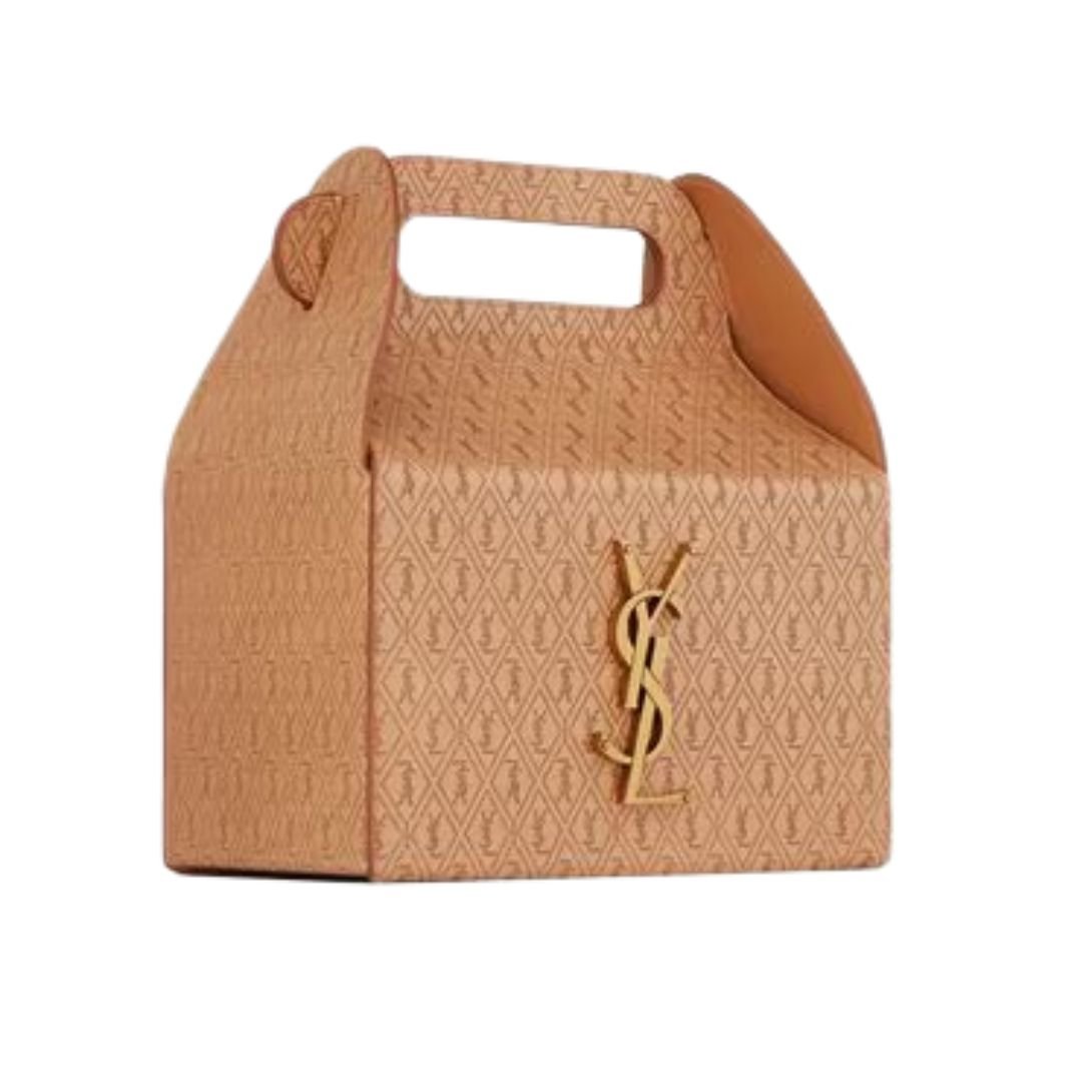 SAINT LAURENT TAKE AWAY BOX IN LEATHER BROWN GOLD