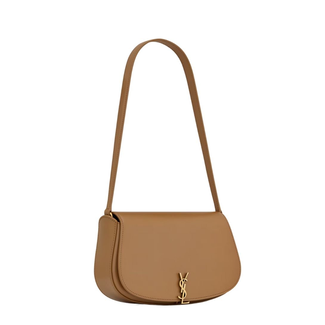 SAINT LAURENT VOLTAIRE LEATHER MINI SHOULDER BAG DARK CORK