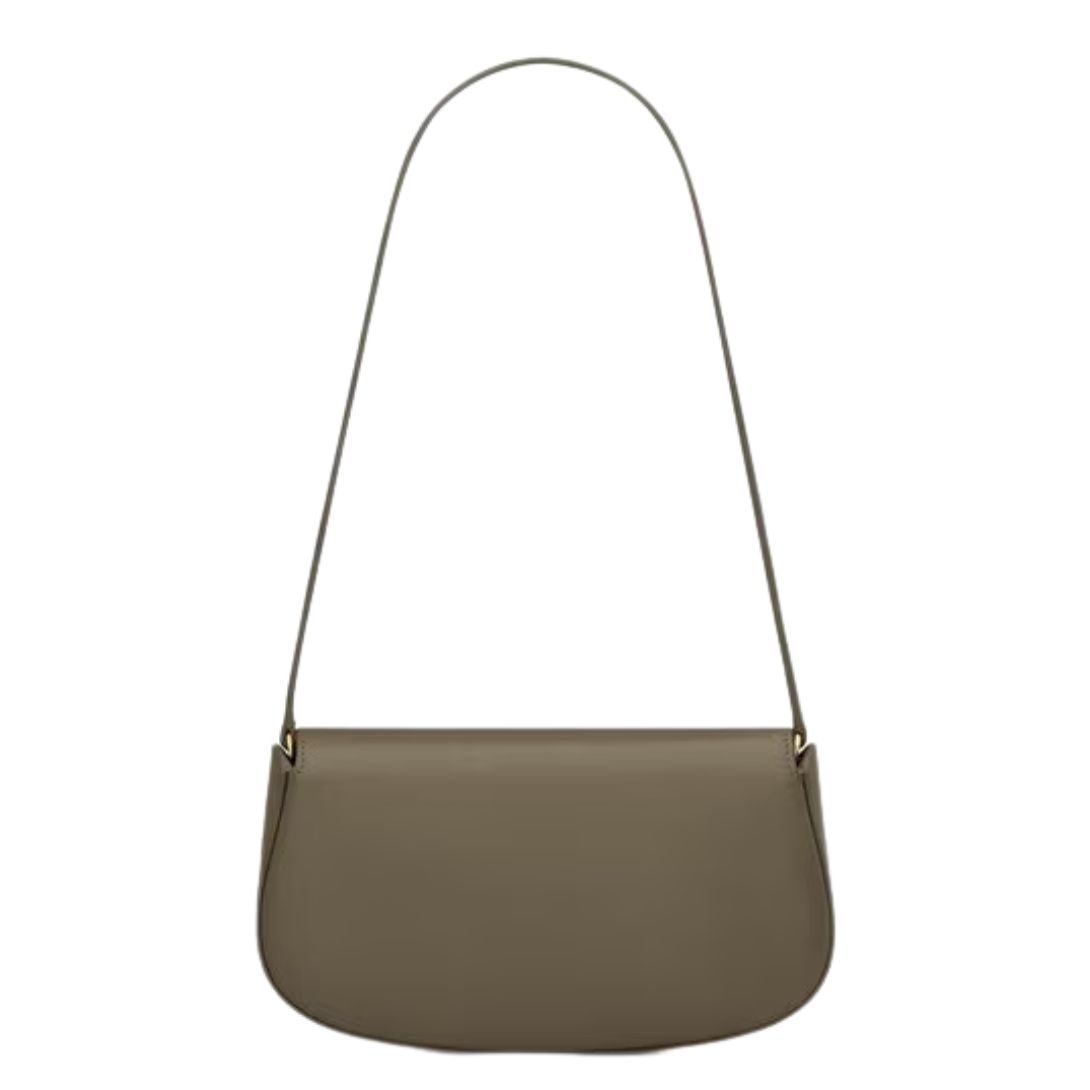 Saint Laurent’s half-moon shoulder bag is a study in modern elegance. Crafted in smooth, gently polished calfskin, its clean crescent silhouette is defined by a structured flap and the house’s iconic Cassandre hinge closure in bronze-toned hardware.