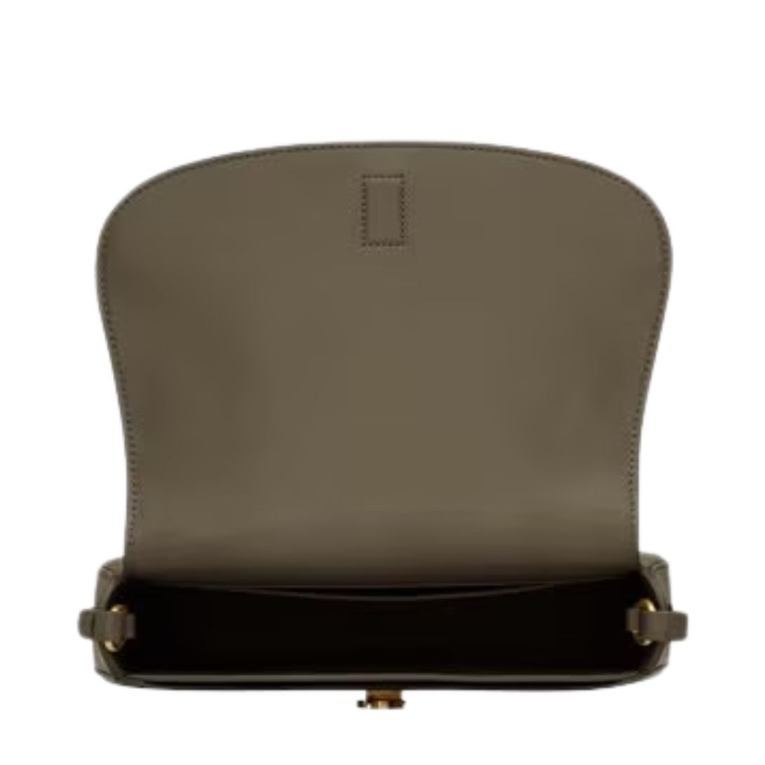 The flap opens to a leather-lined interior with a flat pocket—perfect for keeping small essentials close. A gracefully curved strap sits comfortably on the shoulder, making it a refined companion from day to night.