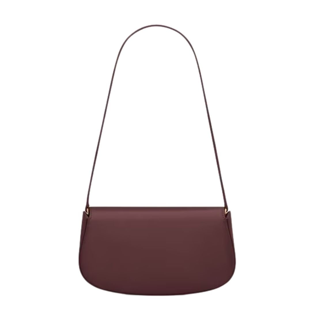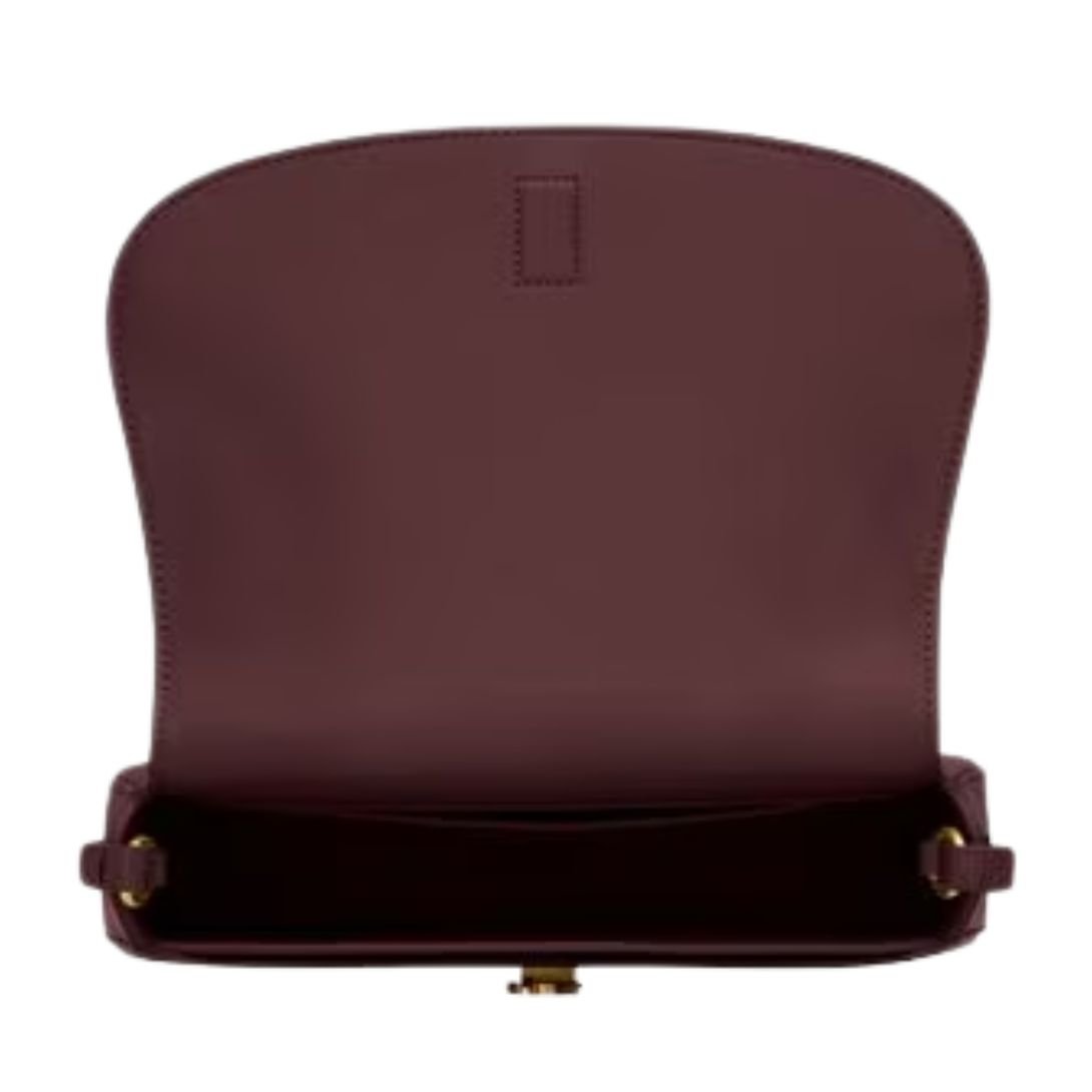The flap opens to a leather-lined interior with a flat pocket—perfect for keeping small essentials close. A gracefully curved strap sits comfortably on the shoulder, making it a refined companion from day to night.