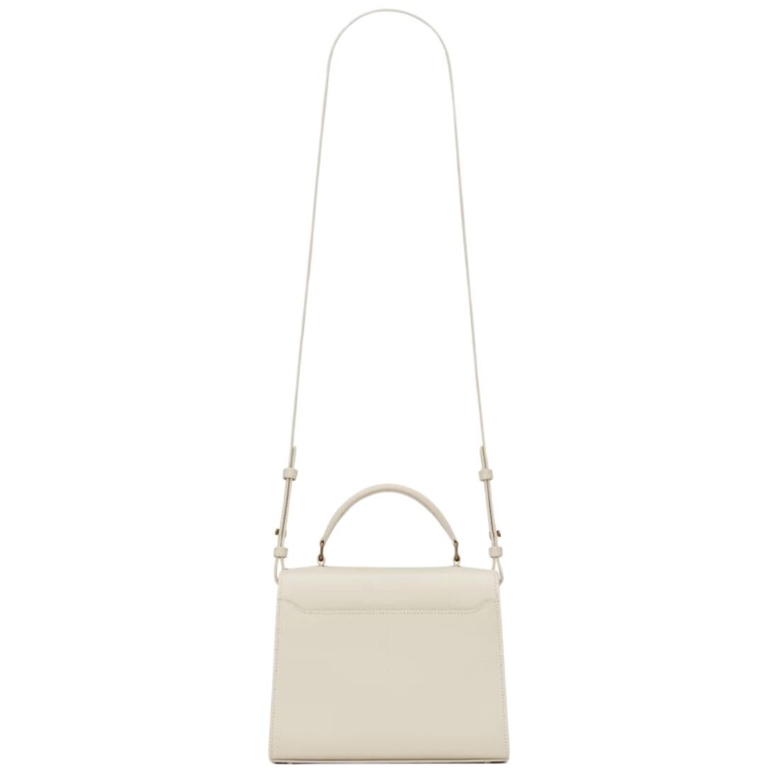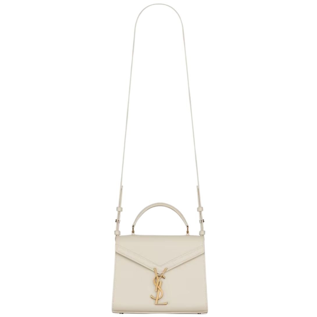 SAINT LAURENT WOMEN’S CASSANDRA MINI TOP HANDLE BAG IN GRAIN DE POUDRE EMBOSSED LEATHER BLANC VINTAGE