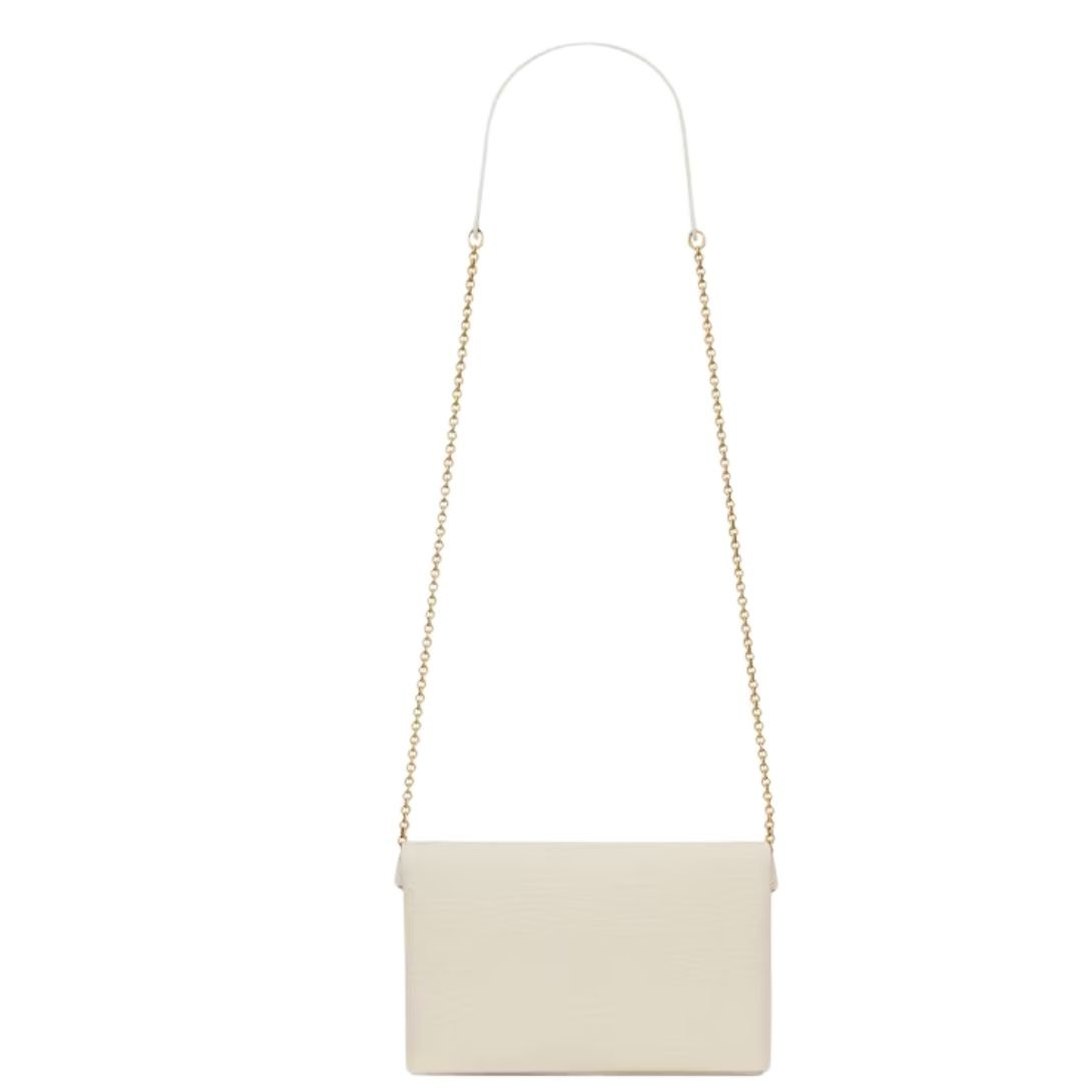 SAINT LAURENT WOMEN’S CASSANDRE CHAIN POUCH IN LAMBSKIN BLANC VINTAGE