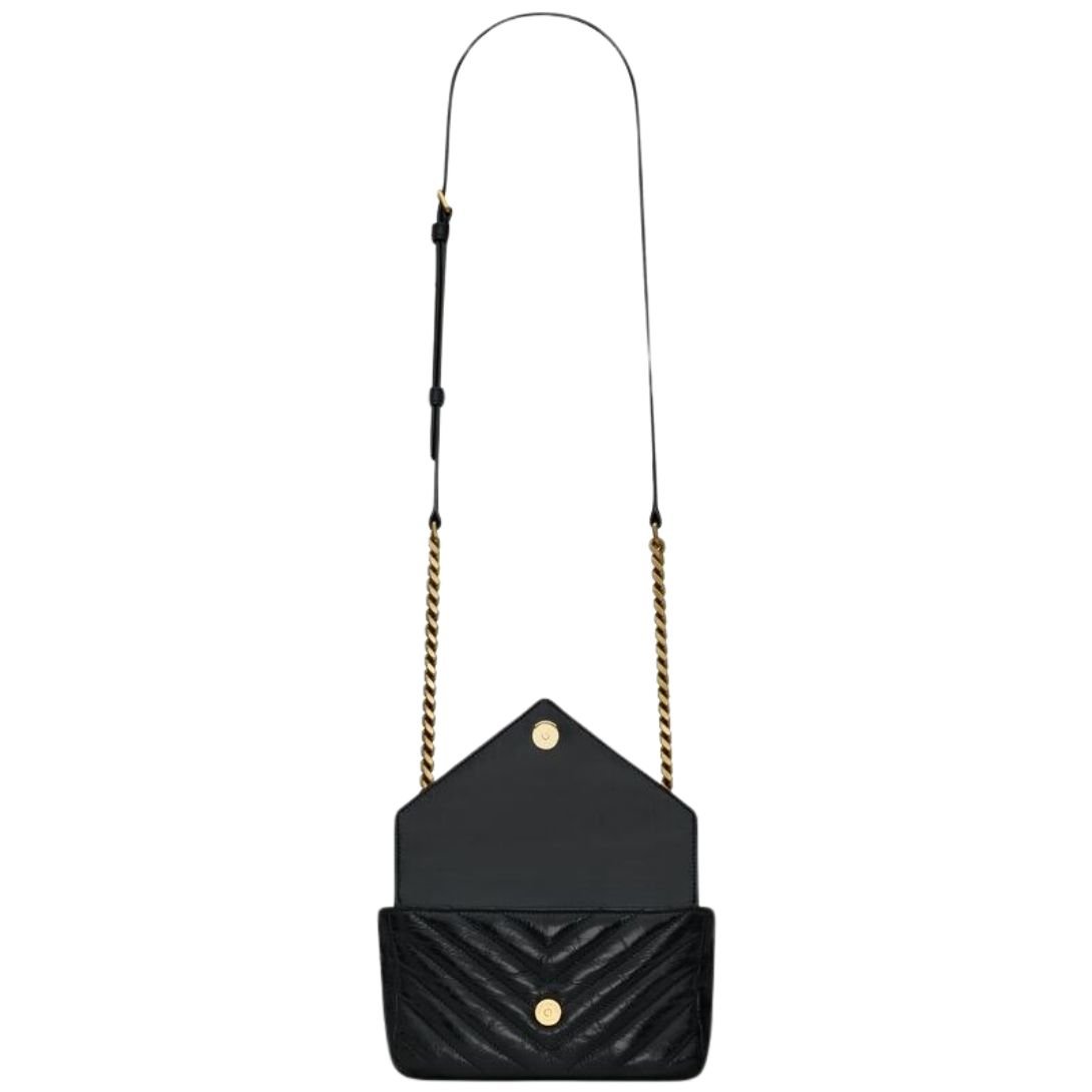 SAINT LAURENT WOMEN’S COLLEGE MINI CHAIN BAG IN SHINY CRACKLED LEATHER BLACK