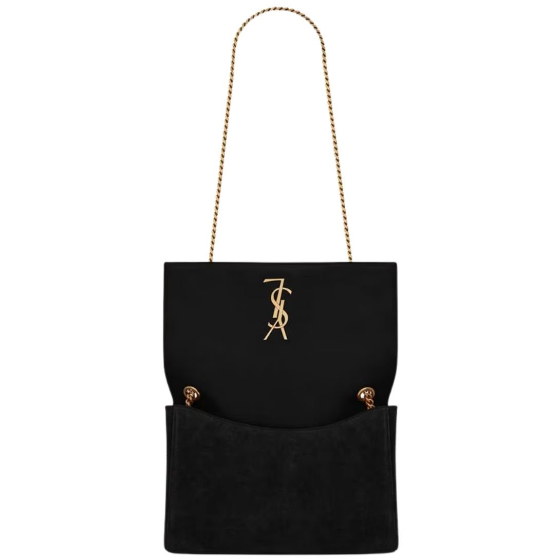 SAINT LAURENT WOMEN’S KATE MEDIUM REVERSIBLE SHOULDER BAG IN SUEDE BLACK