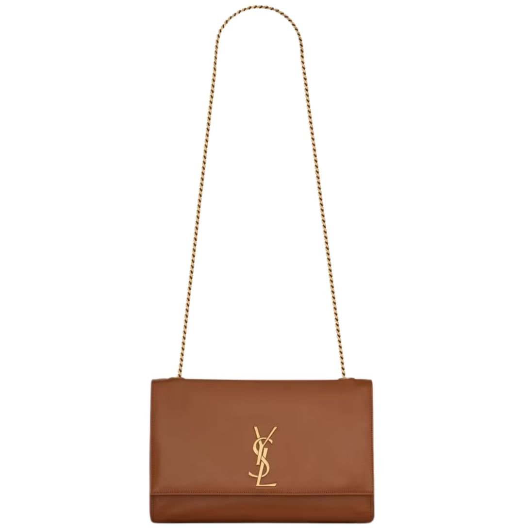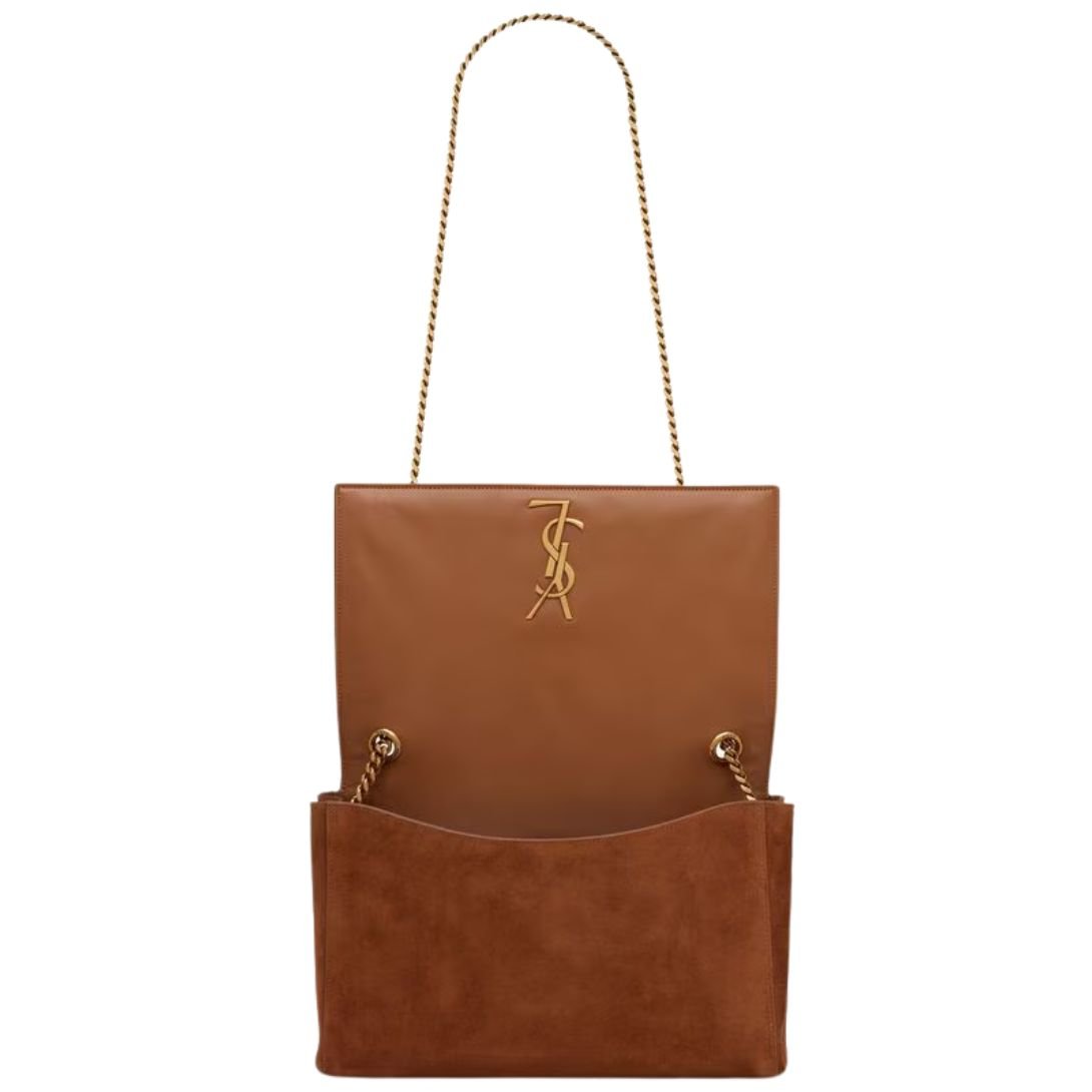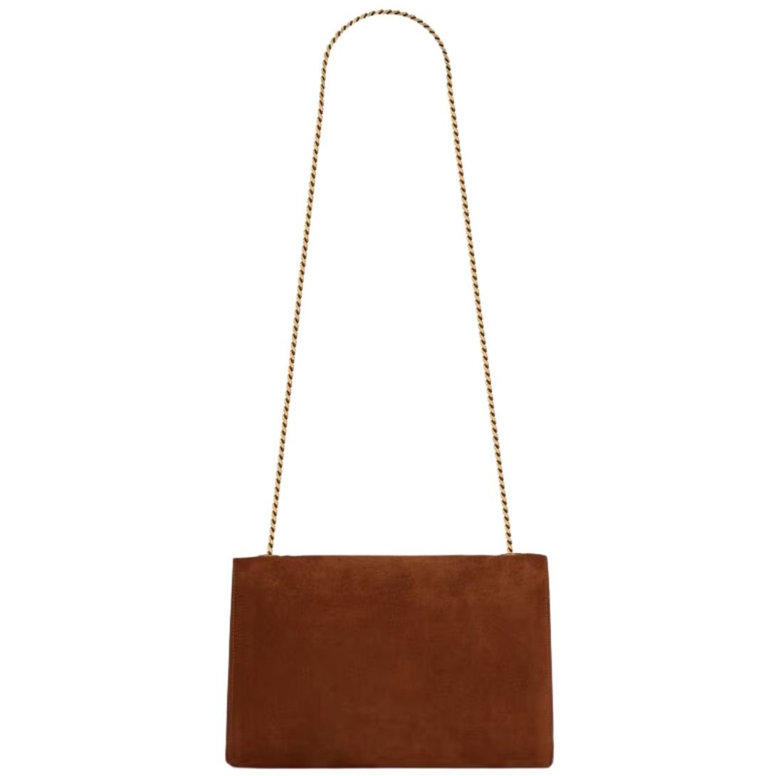 SAINT LAURENT WOMEN’S KATE MEDIUM REVERSIBLE SHOULDER BAG IN SUEDE CANNELLE