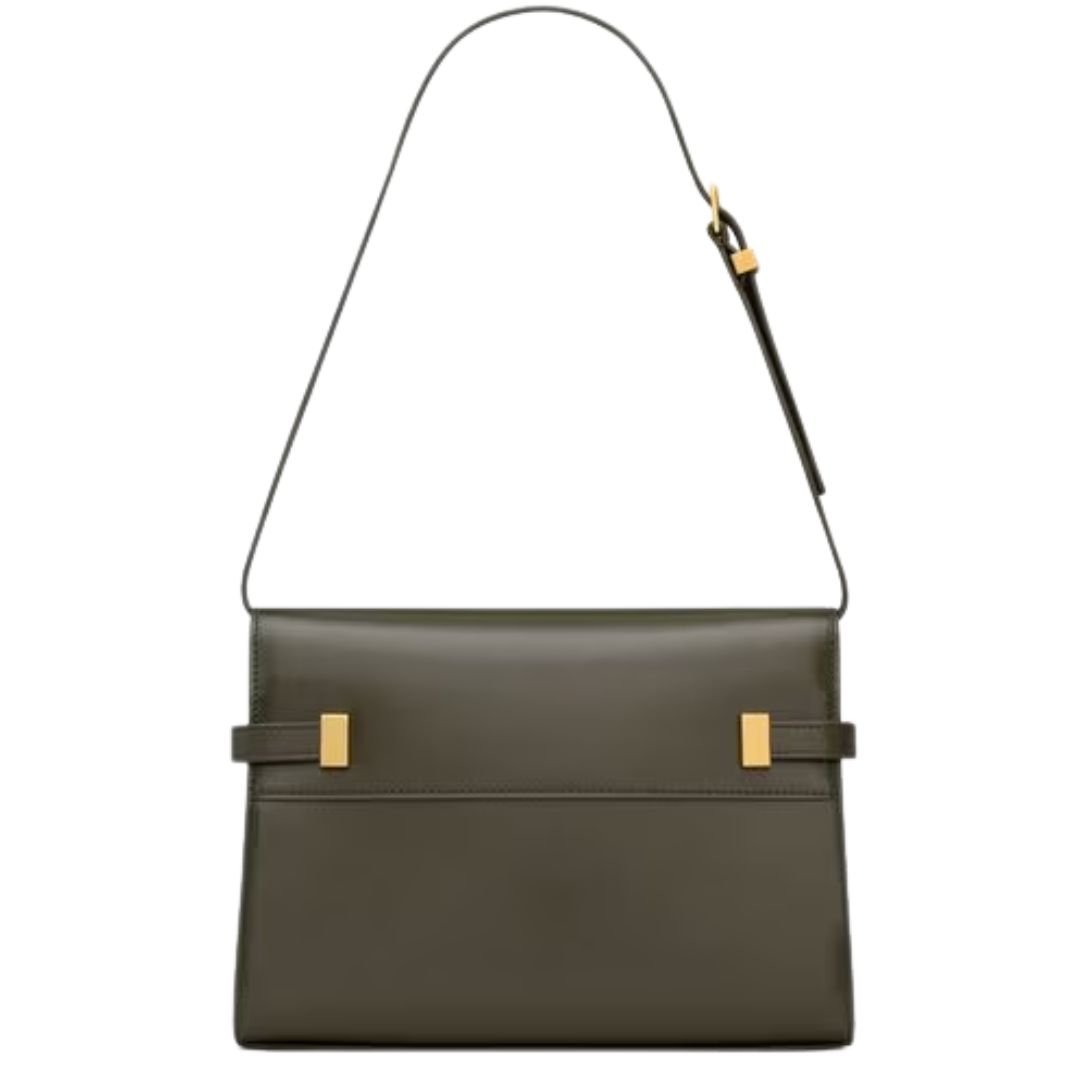 The Saint Laurent Manhattan bag embodies sleek modernism with its structured silhouette and refined detailing. Crafted in smooth calfskin leather, it features a minimal flap top, adjustable side compression tabs, and the signature magnetic clip buckle closure—an homage to Saint Laurent’s clean, tailored aesthetic.