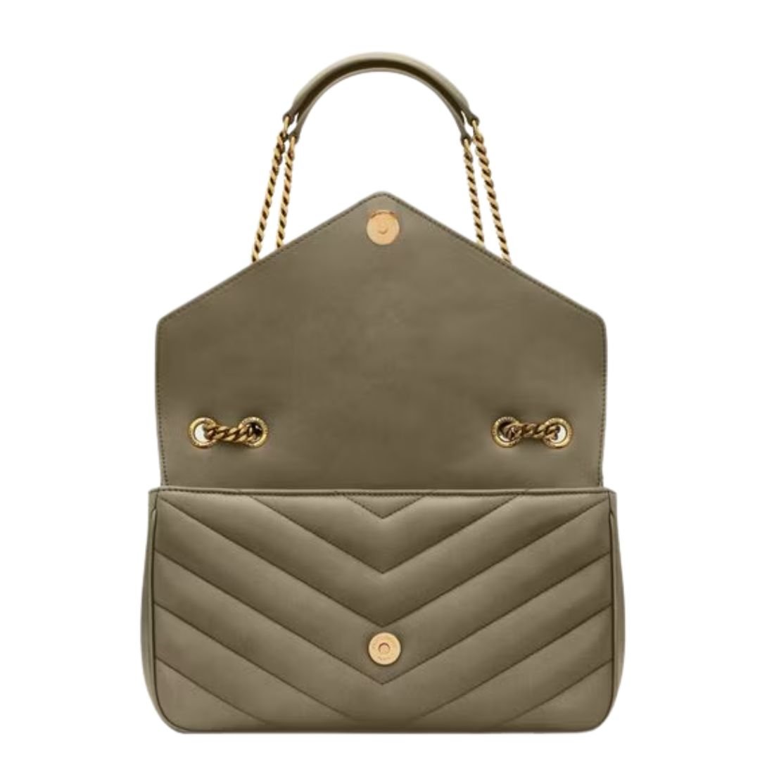 SAINT LAURENT WOMEN’S MEDIUM LOULOU LEATHER SHOULDER BAG IN DARK STRONG MOSS