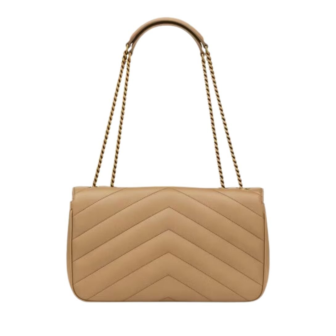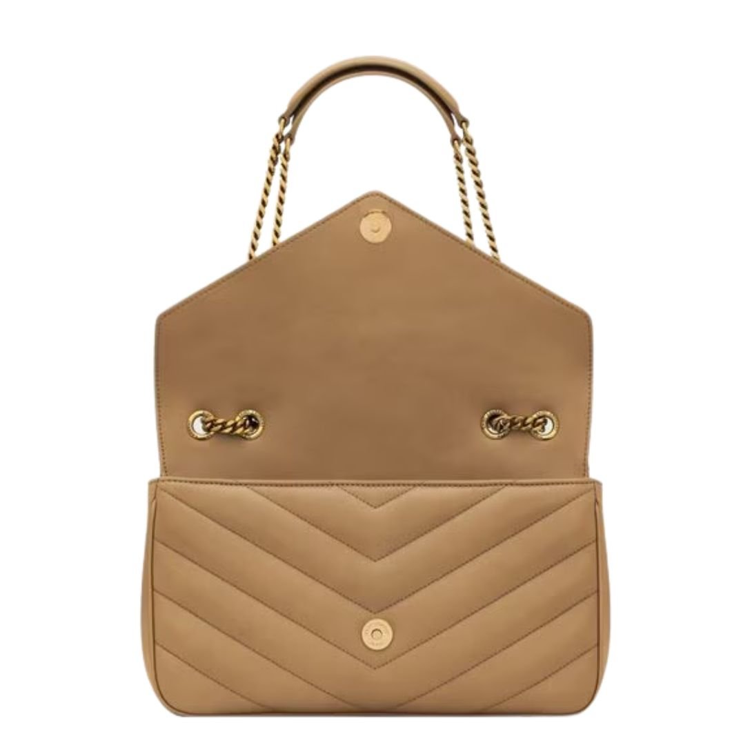 SAINT LAURENT WOMEN’S MEDIUM LOULOU LEATHER SHOULDER BAG IN NATURAL TAN
