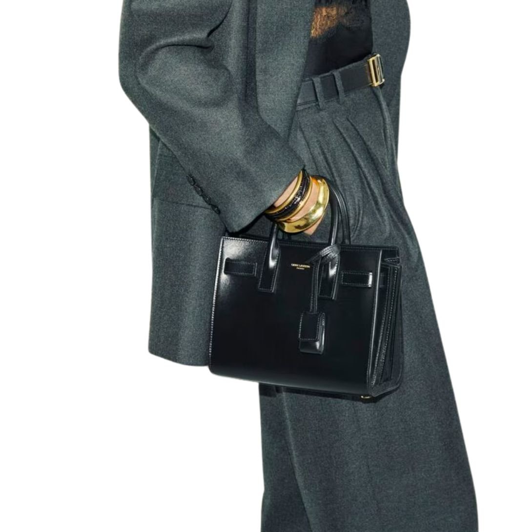 This refined nano version of the Sac de Jour showcases Saint Laurent’s timeless craftsmanship in a compact, structured form. Crafted in luxurious calfskin leather and fully lined in leather, it’s distinguished by its signature accordion sides and clean lines.