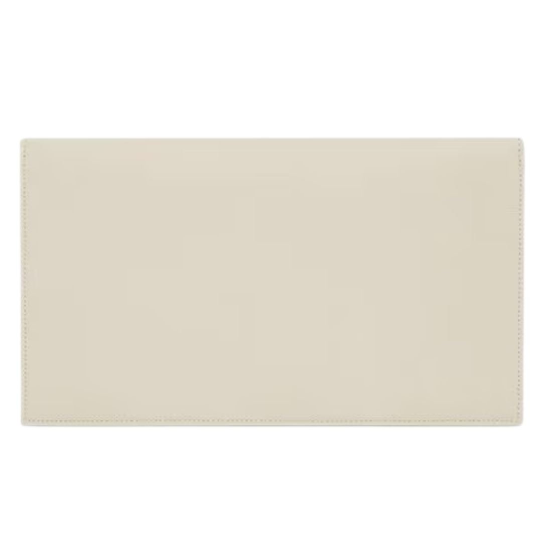 This Saint laurent women’s uptown pouch Blanc vintage small envelope clutch showcases a sleek, structured design with a signature flap adorned by the iconic Cassandre logo. Its refined aesthetic makes it a timeless piece for both day and evening occasions.