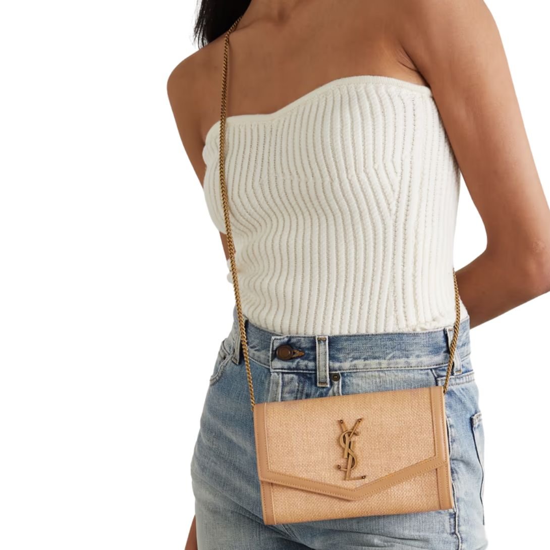 With expert craftsmanship, the Saint Laurent Uptown Raffia Shoulder Bag is a luxurious and versatile piece that transitions seamlessly from sunny getaways to city outings.