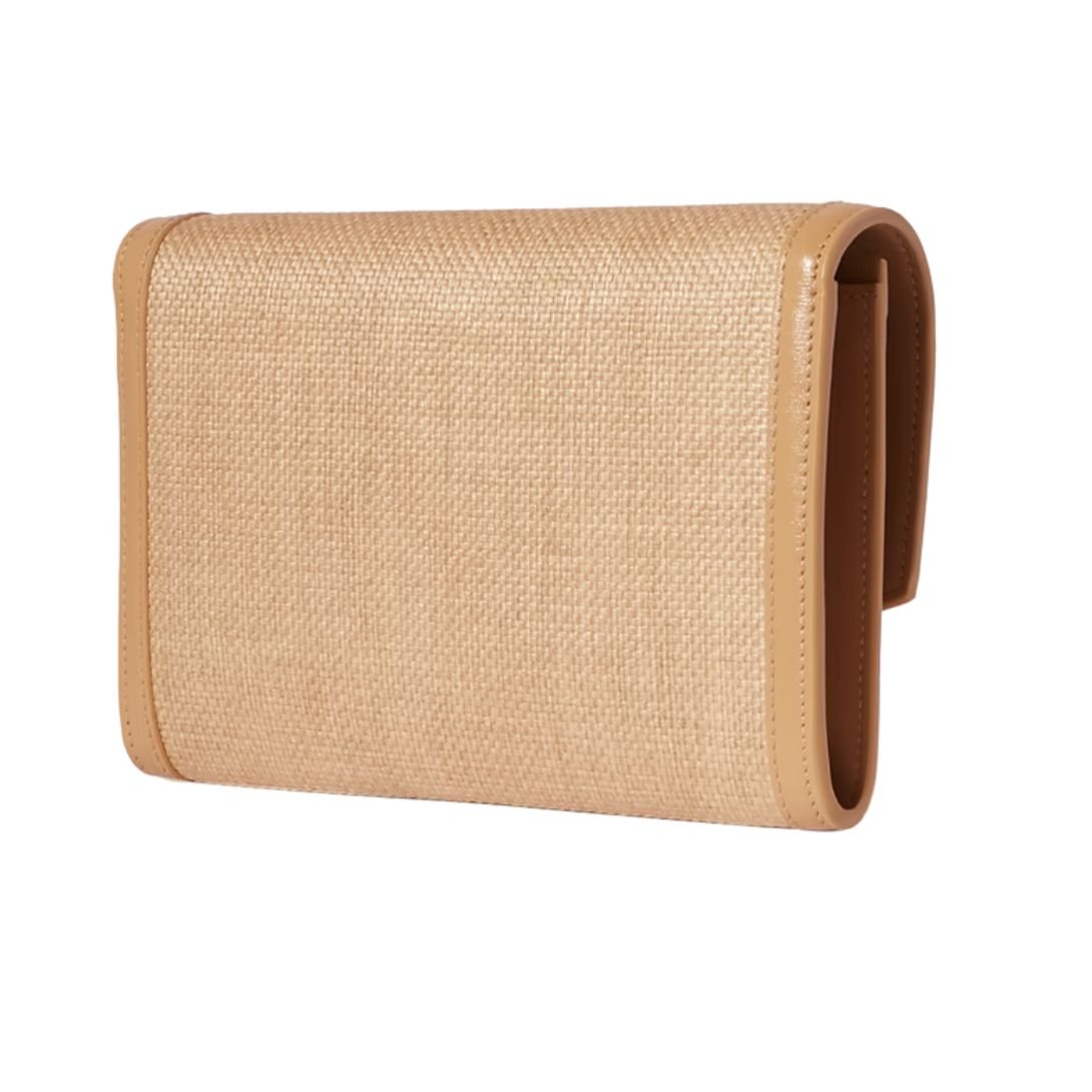 This Uptown bag blends the rustic charm of raffia with the smoothness of sand-colored calf leather. The combination of materials creates a perfect balance of casual chic and refined elegance, making it a versatile accessory for both day and night.