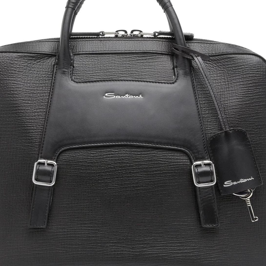 SANTONI BLACK EMBOSSED LEATHER BRIEFCASE