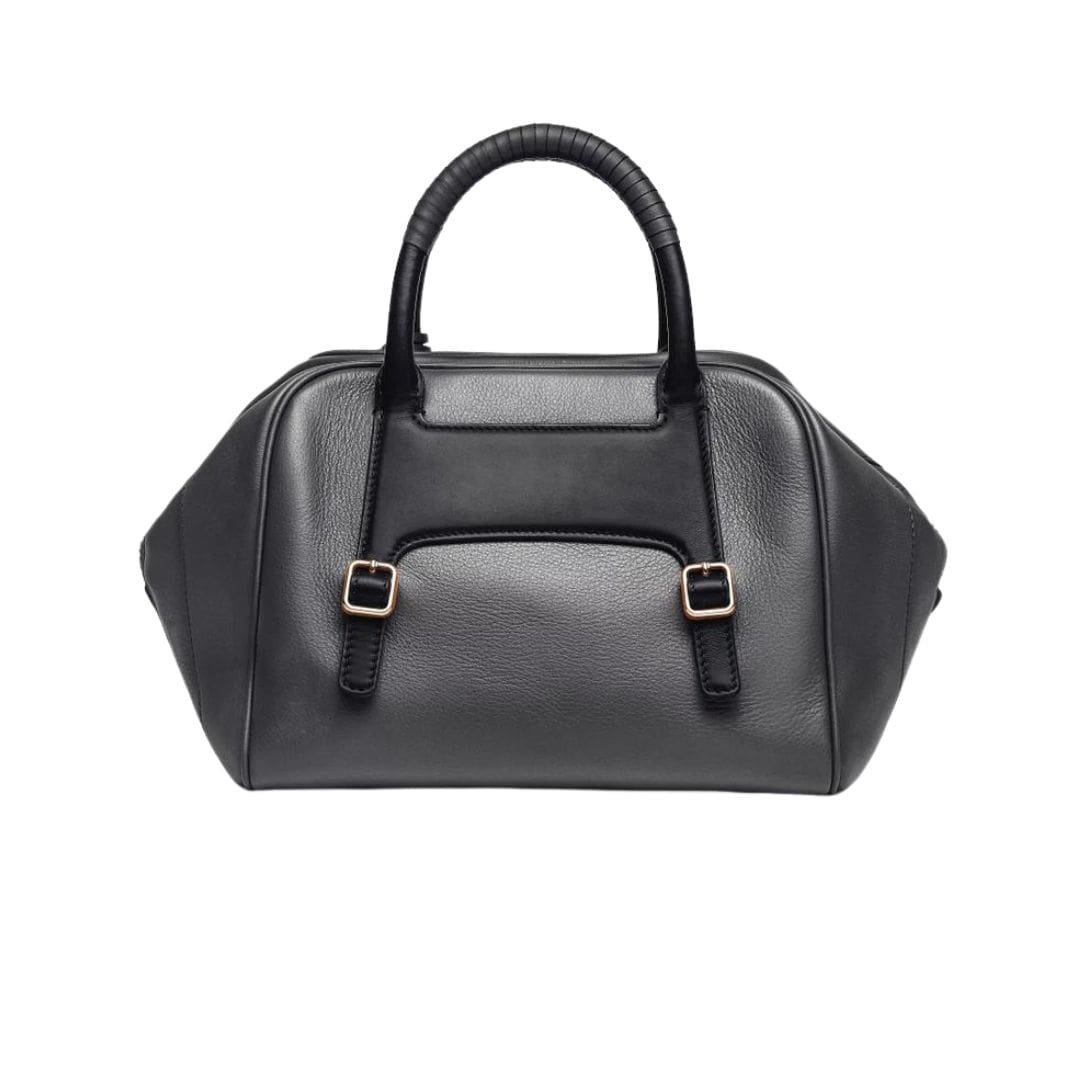 The exterior of the handbag is crafted from premium black leather, exuding luxury and refinement. The smooth texture of the leather lends a touch of opulence, while its durability ensures longevity, promising to withstand the test of time with grace. The sleek silhouette of the bag is accentuated by clean lines and minimalistic hardware, adding a touch of understated glamour.