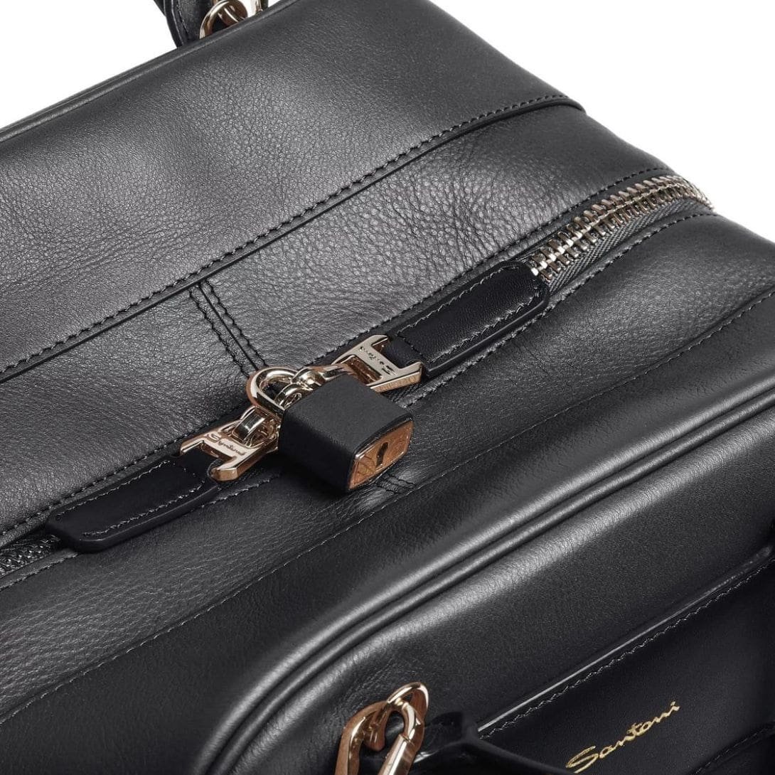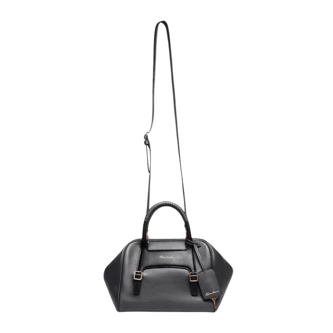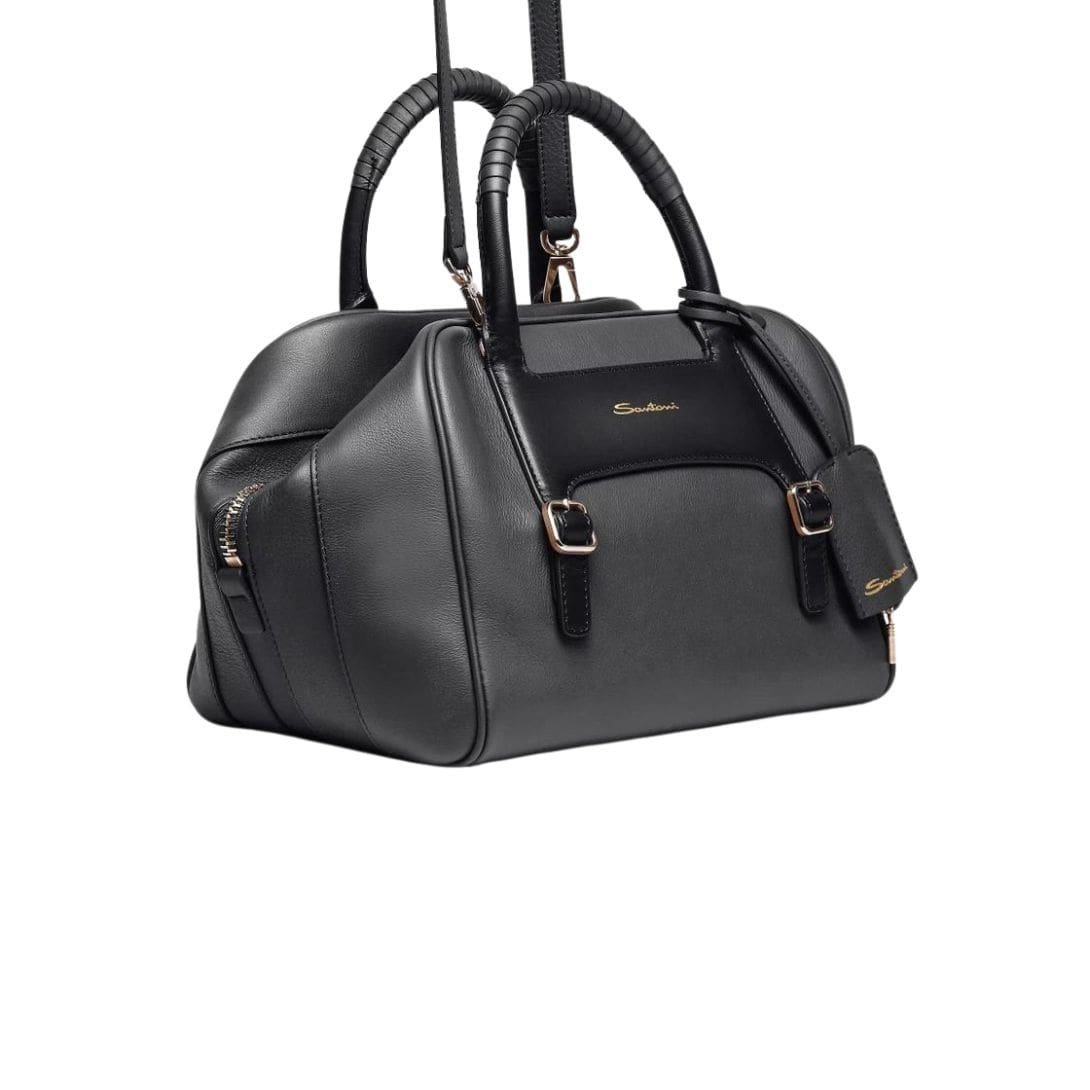 SANTONI BLACK LEATHER HANDBAG