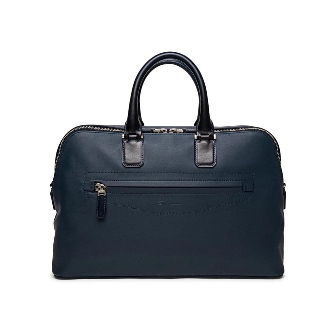 Functionality meets style with discreet yet distinctive branding, showcasing the esteemed Santoni logo, a symbol of unparalleled craftsmanship and luxury. This subtle embellishment further elevates the backpack’s prestige, making it a statement piece for discerning individuals who appreciate the finer things in life.